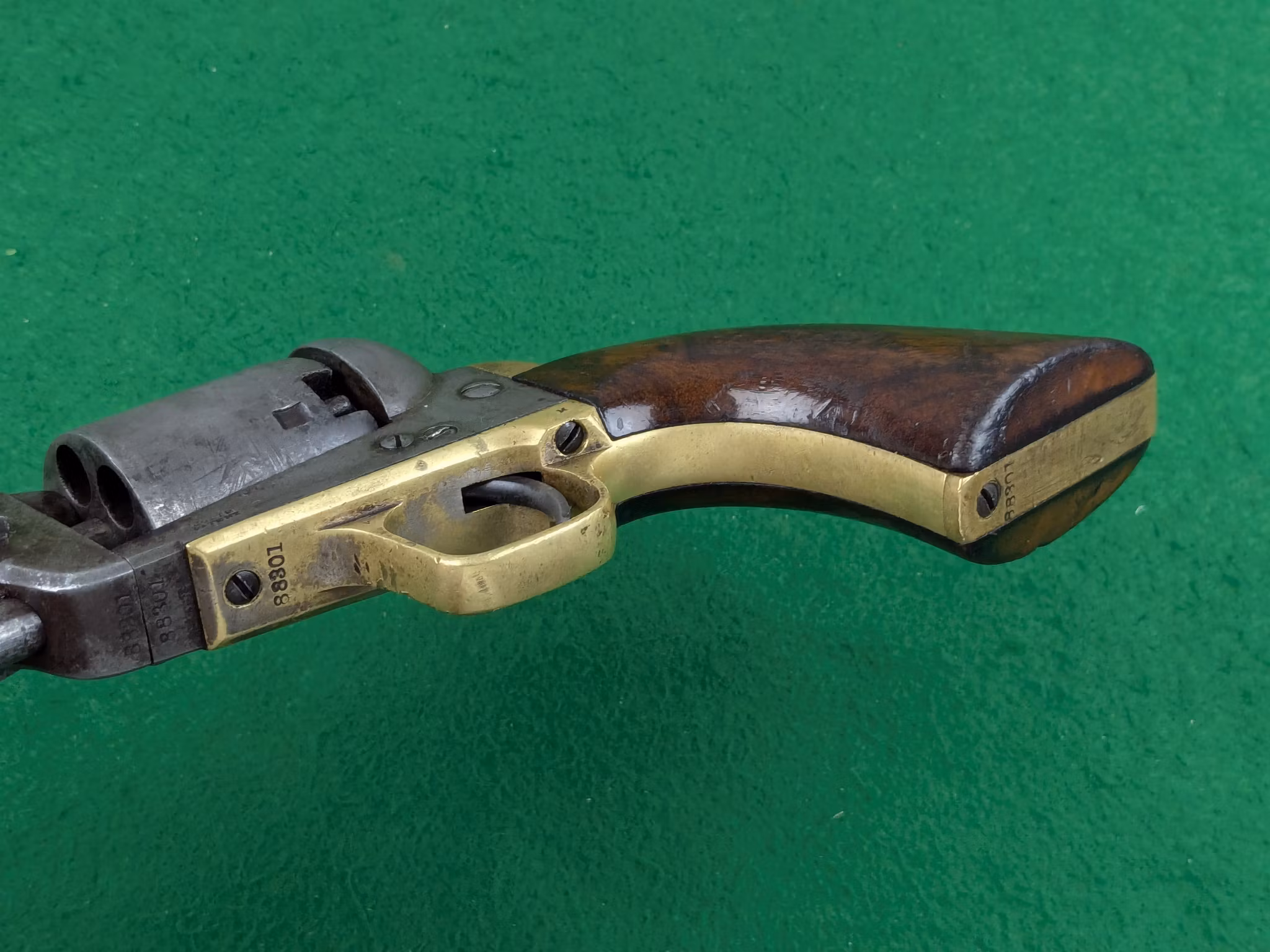 Colt Model 1851 Navy Revolver med serienummer 88301. Tillverkad år 1858 av Colt's Patent Firearms Manufacturing Company i Hartford, Connecticut.