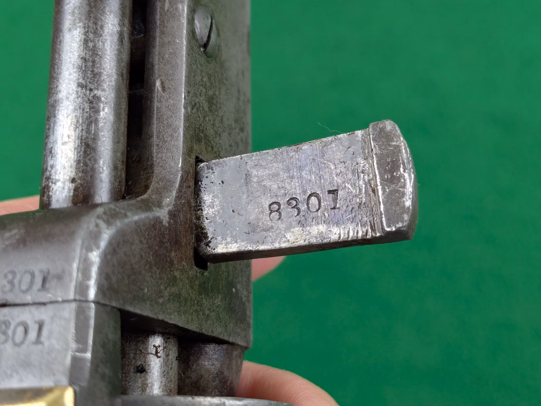 En jämn grå patina täcker hela vapnet. Loppet kan rengöras bättre. Riklig original fernissa täcker kolvträet som har utmärkt passform. Få hack eller slagmärken överlag och skarpa kanter kännetecknar revolvern.