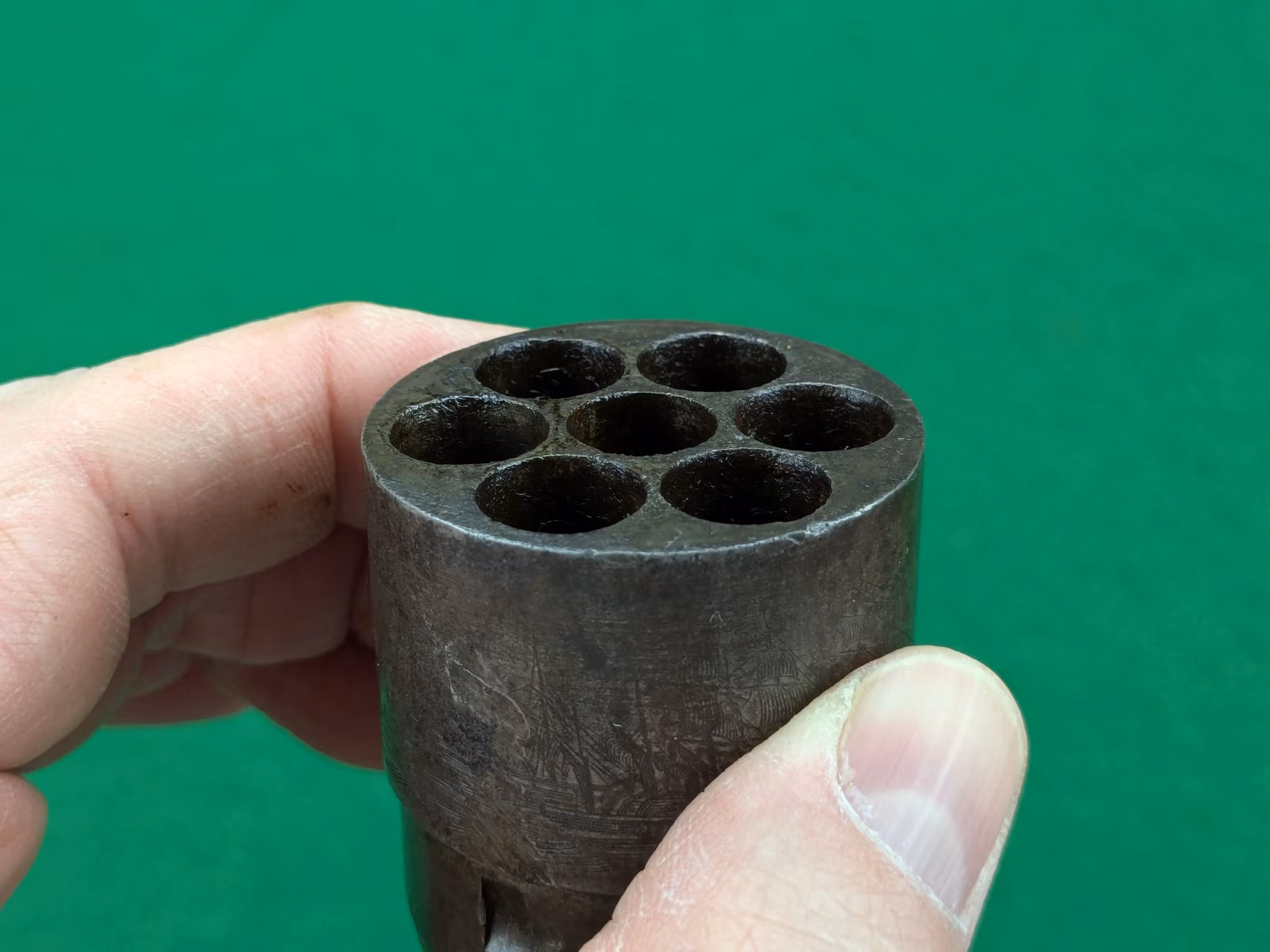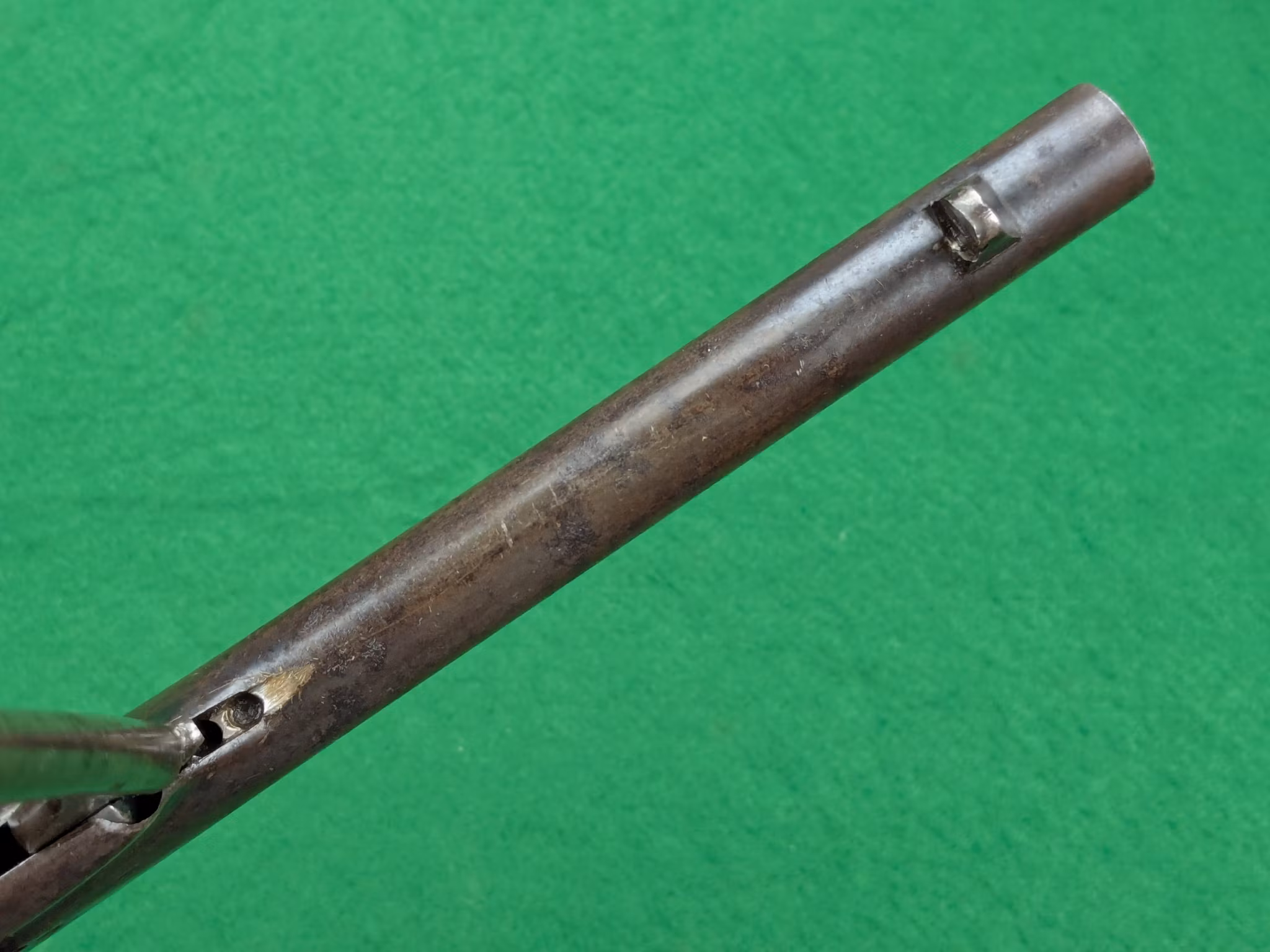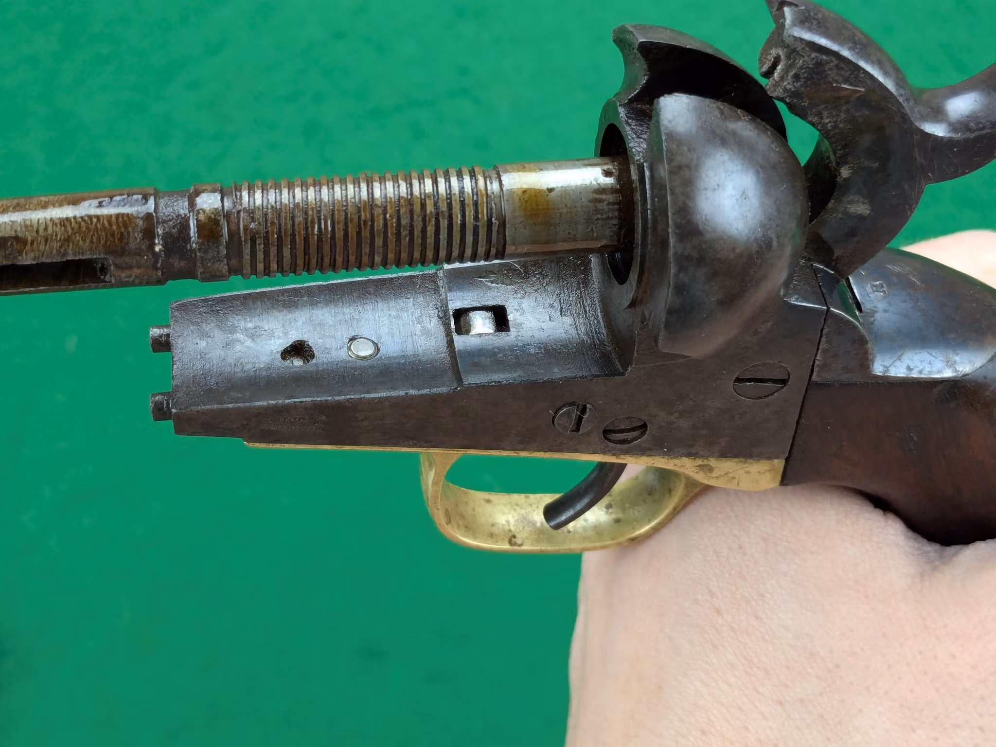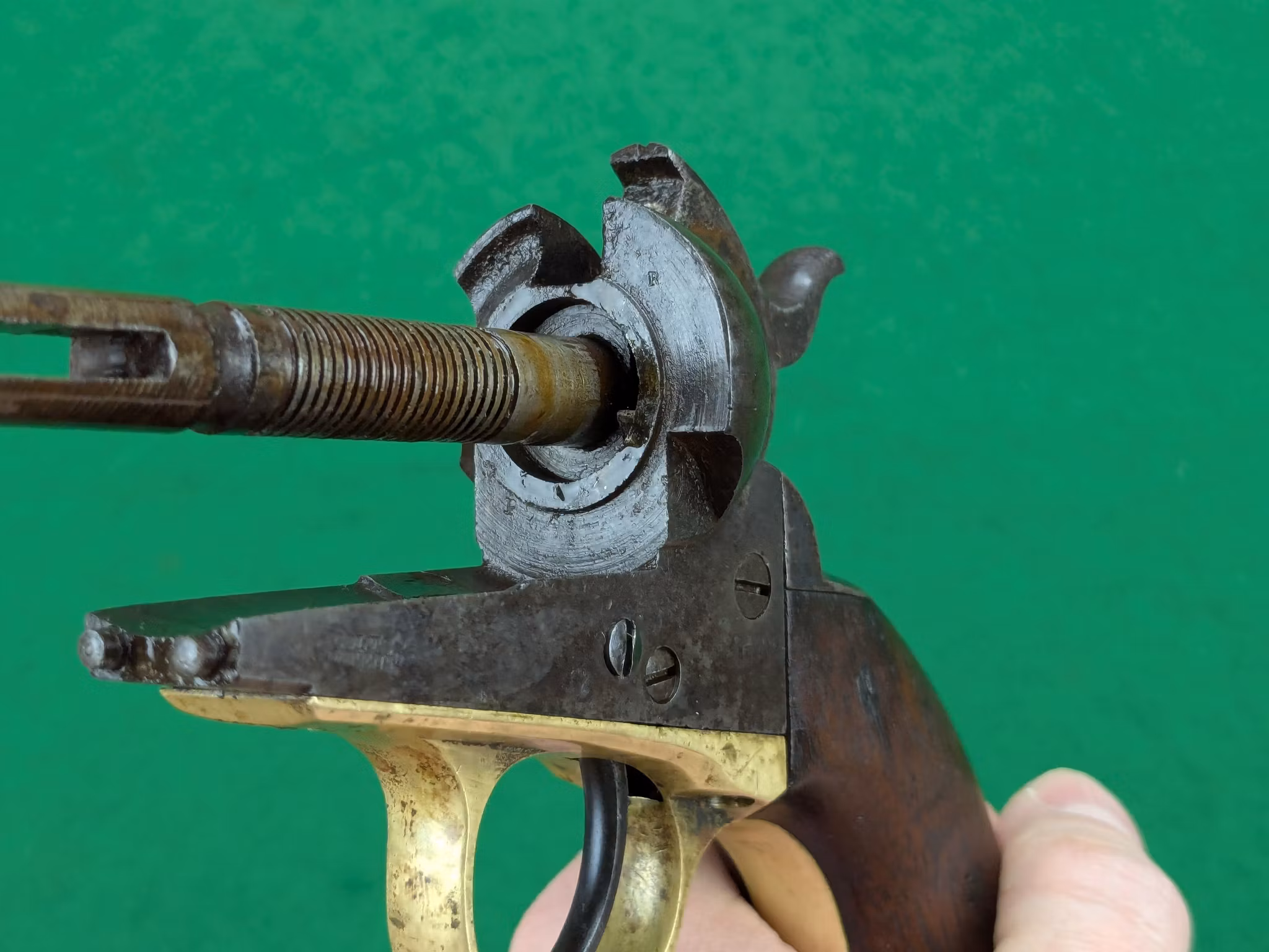 Mekaniskt välfungerande. Originalnipplarna är bevarade, en av dem är skadad. Trumman generellt fin och har kvar säkerhetsstiften men tillplattade. Laddarmen är komplett men har en brusten underläpp, delen hänger kvar. Mekaniskt känns revolvern väldigt fräsch. Matningen och låsningen av trumman är väldigt distinkt med ytterst lite glapp. Spel mellan trumma och pipa ligger på 0,25 mm.