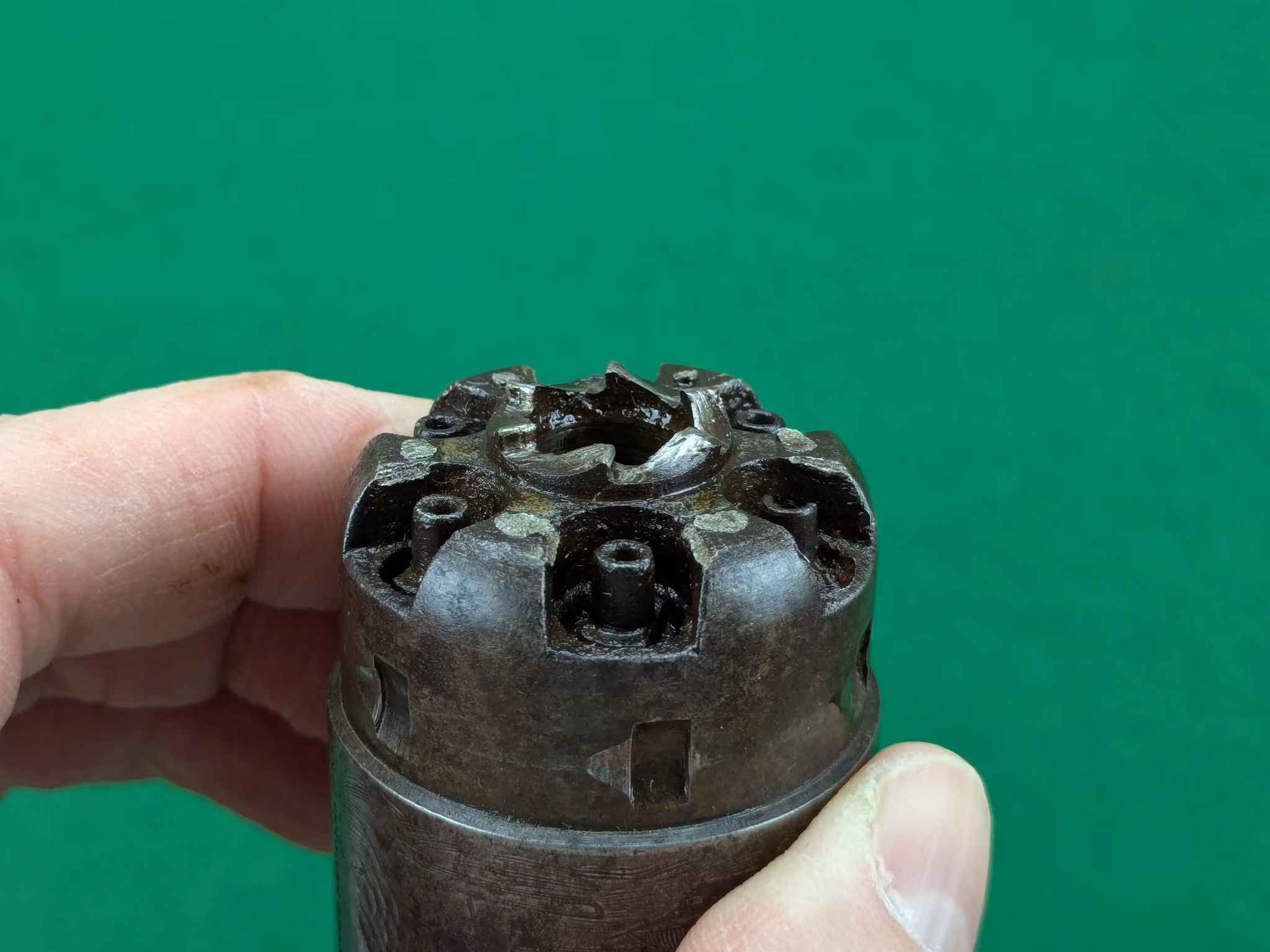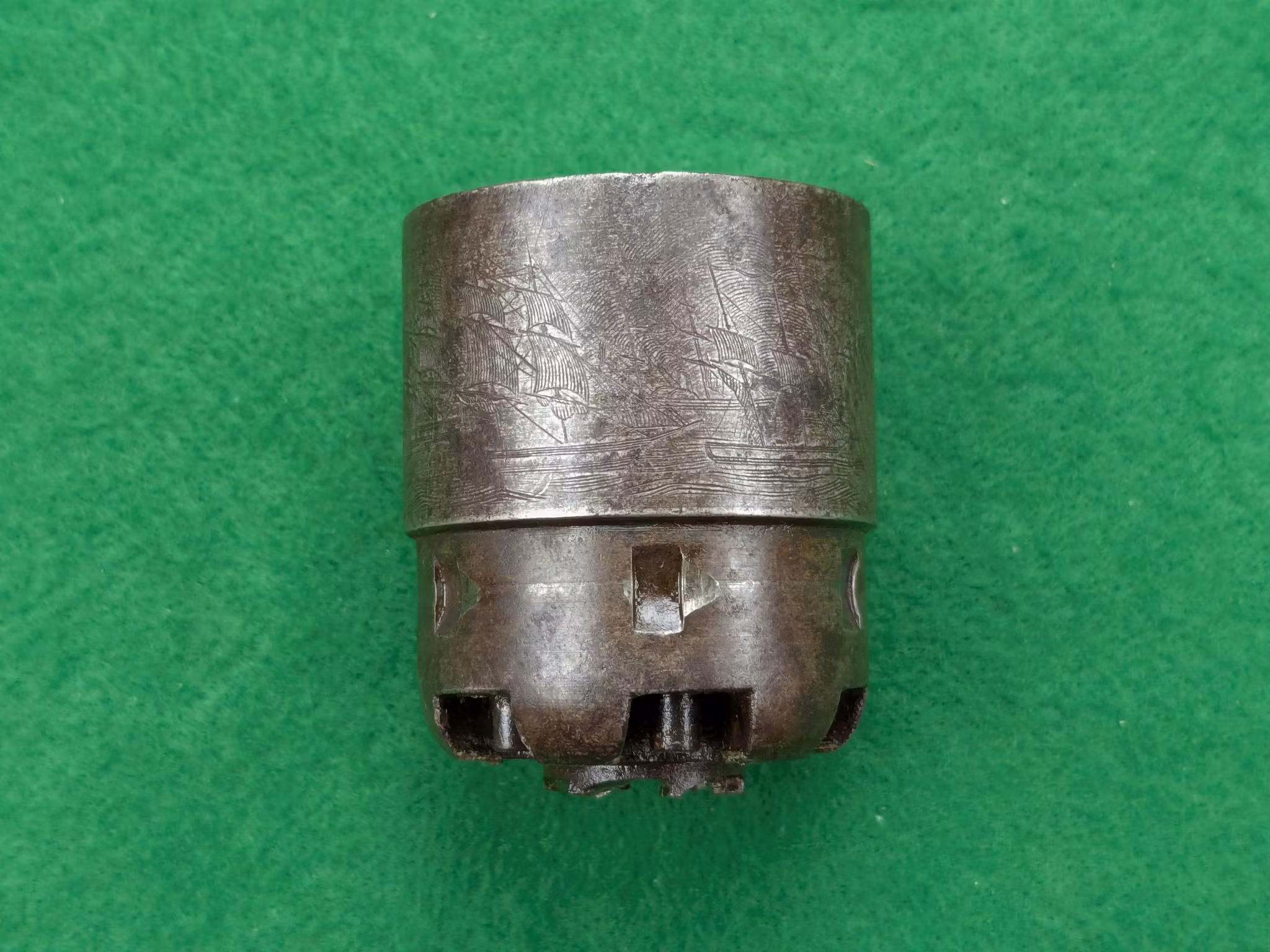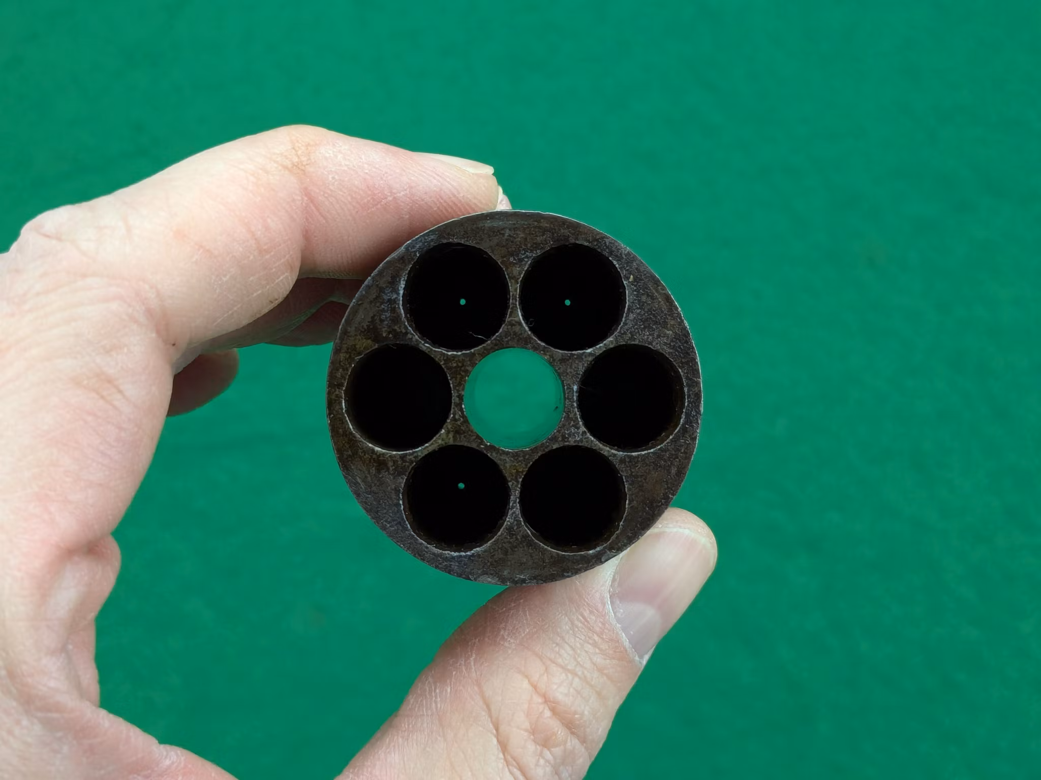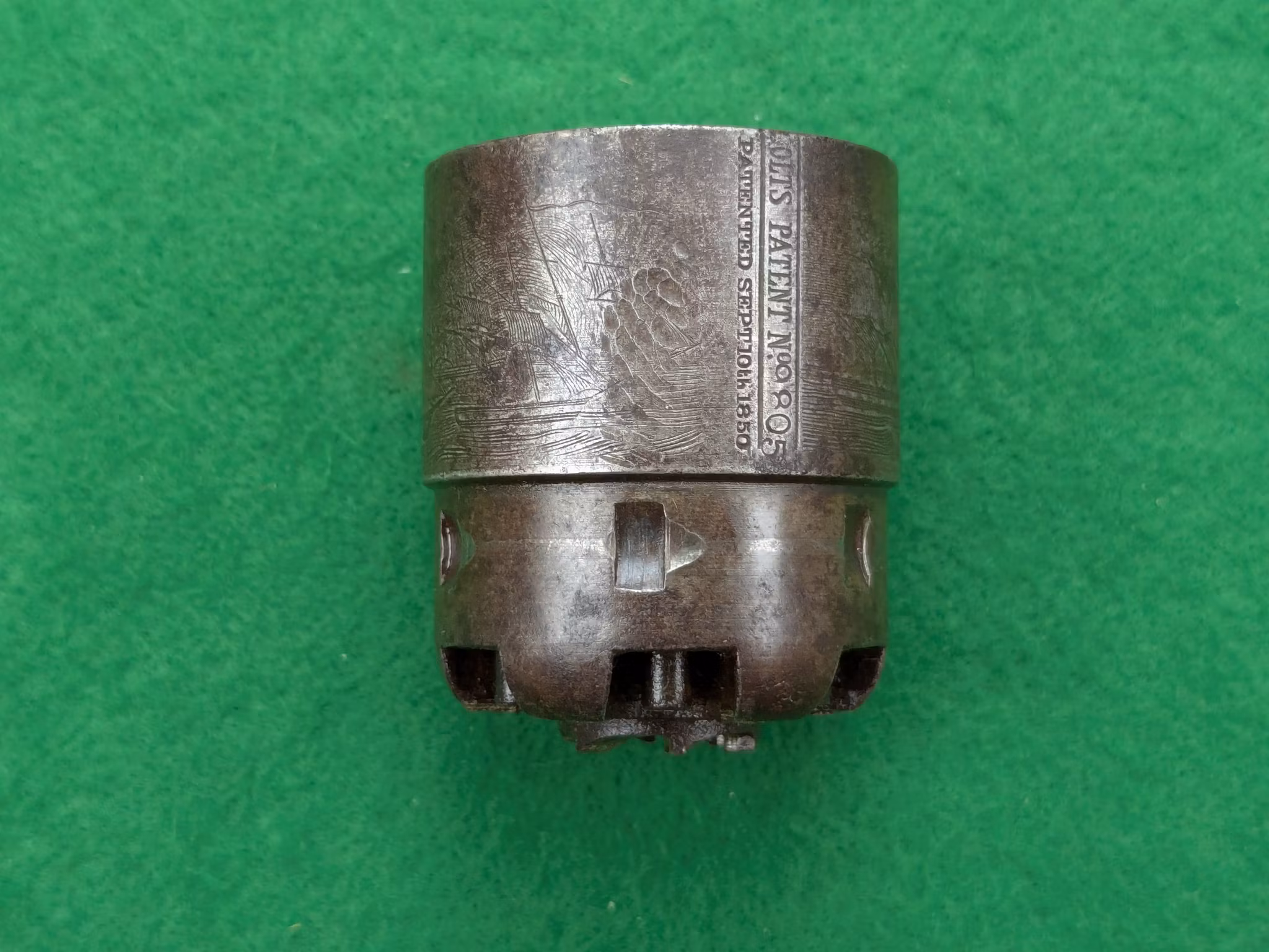Mekaniskt välfungerande. Originalnipplarna är bevarade, en av dem är skadad. Trumman generellt fin och har kvar säkerhetsstiften men tillplattade. Laddarmen är komplett men har en brusten underläpp, delen hänger kvar. Mekaniskt känns revolvern väldigt fräsch. Matningen och låsningen av trumman är väldigt distinkt med ytterst lite glapp. Spel mellan trumma och pipa ligger på 0,25 mm.
