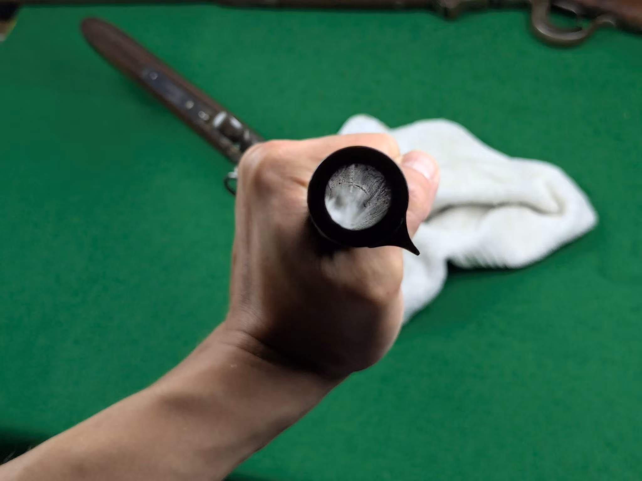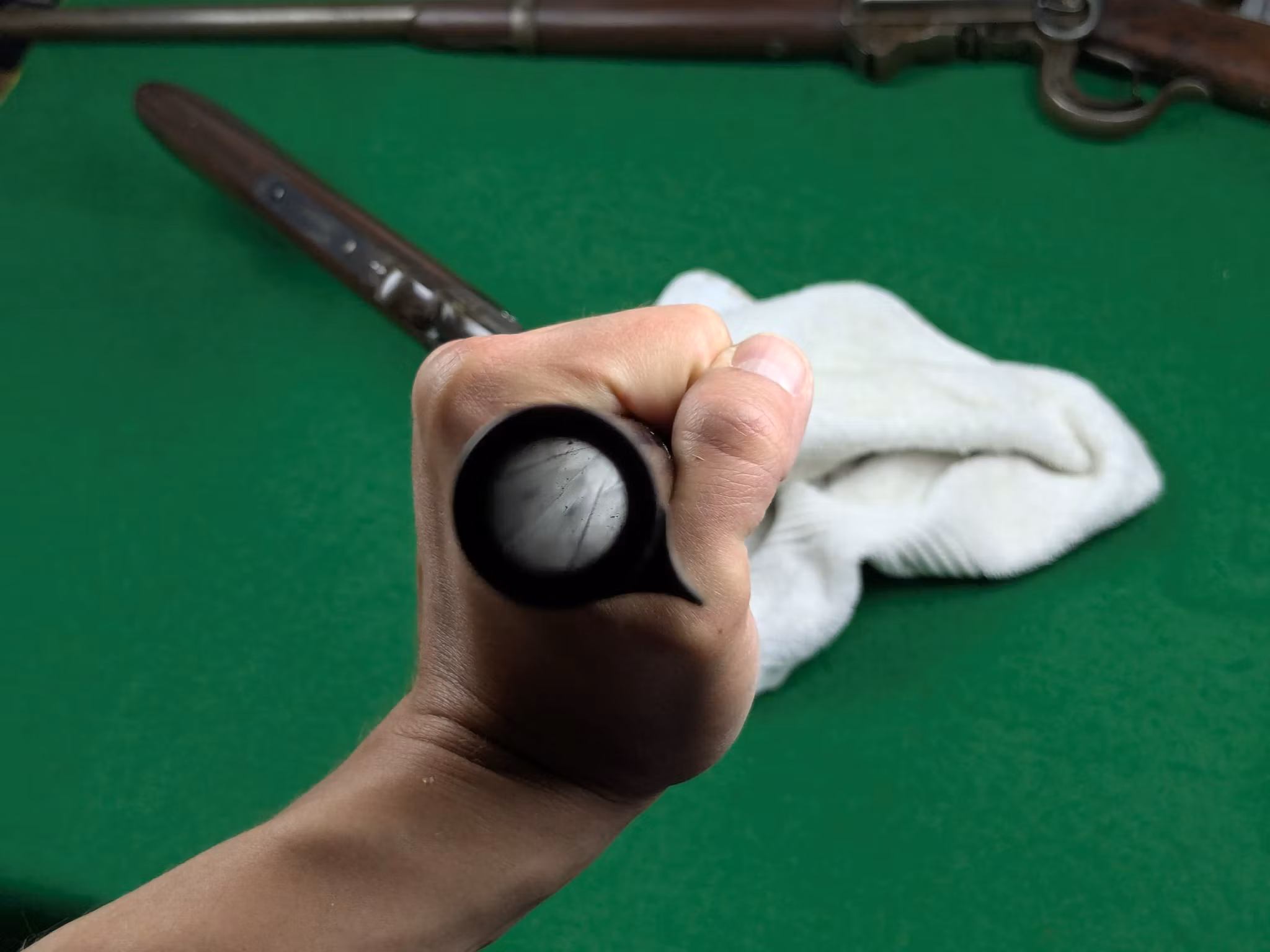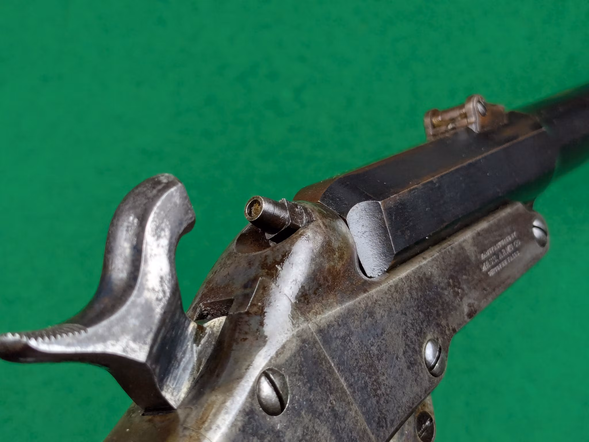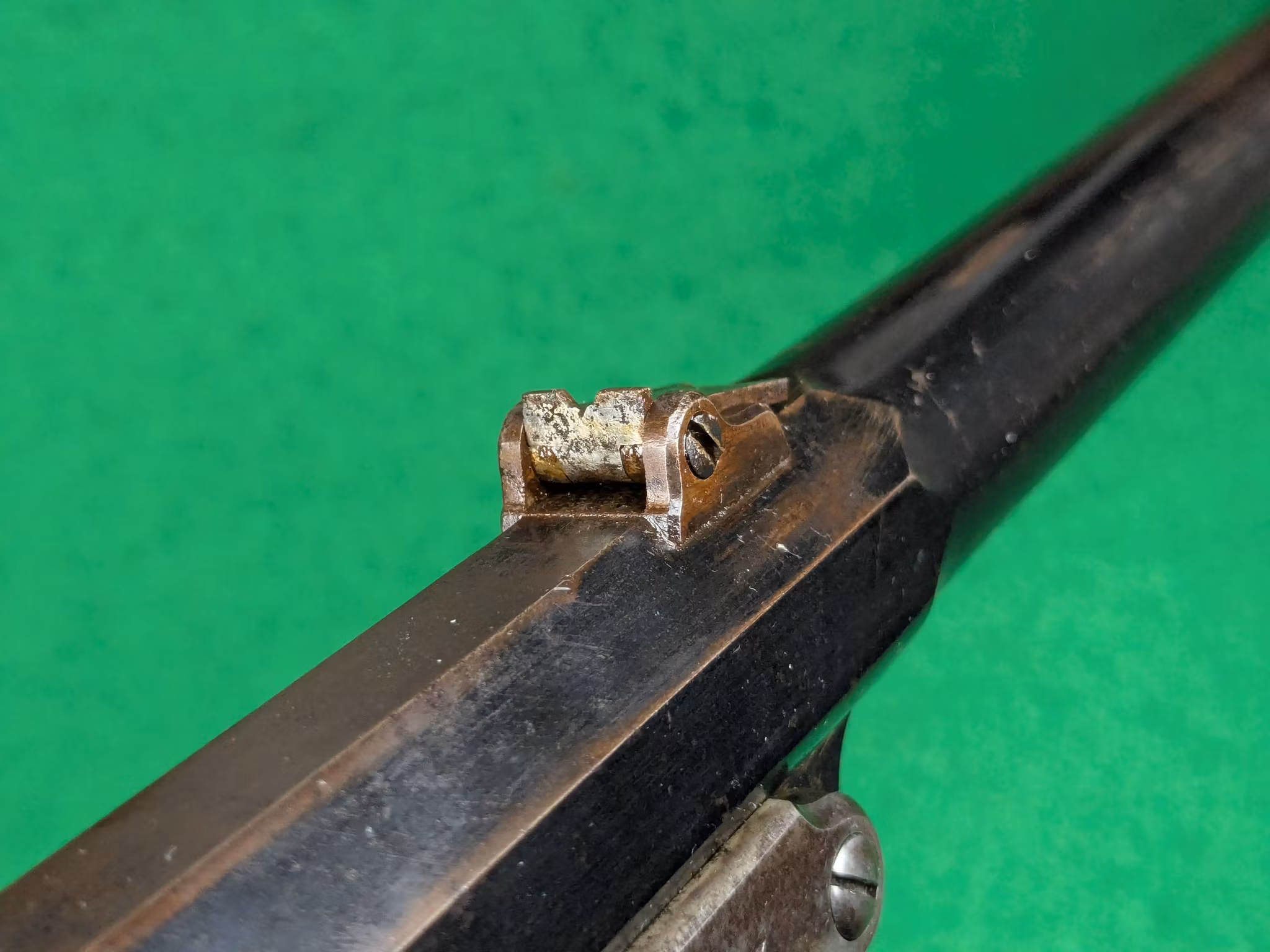 Siktet saknar ett blad, det mellersta och de övriga två rör sig lite väl lätt. Främre siktet är i fint skick. Nippeln är i gott skick men har inte lossats eller kontrollerats. Det ser ut att sitta damm, skräp i nippeln. Man behöver sannolikt rengöra kanalen mellan nippel och patronläge innan man försöker ladda och avfyra vapnet, eller åtminstone kontrollera att det är fritt.