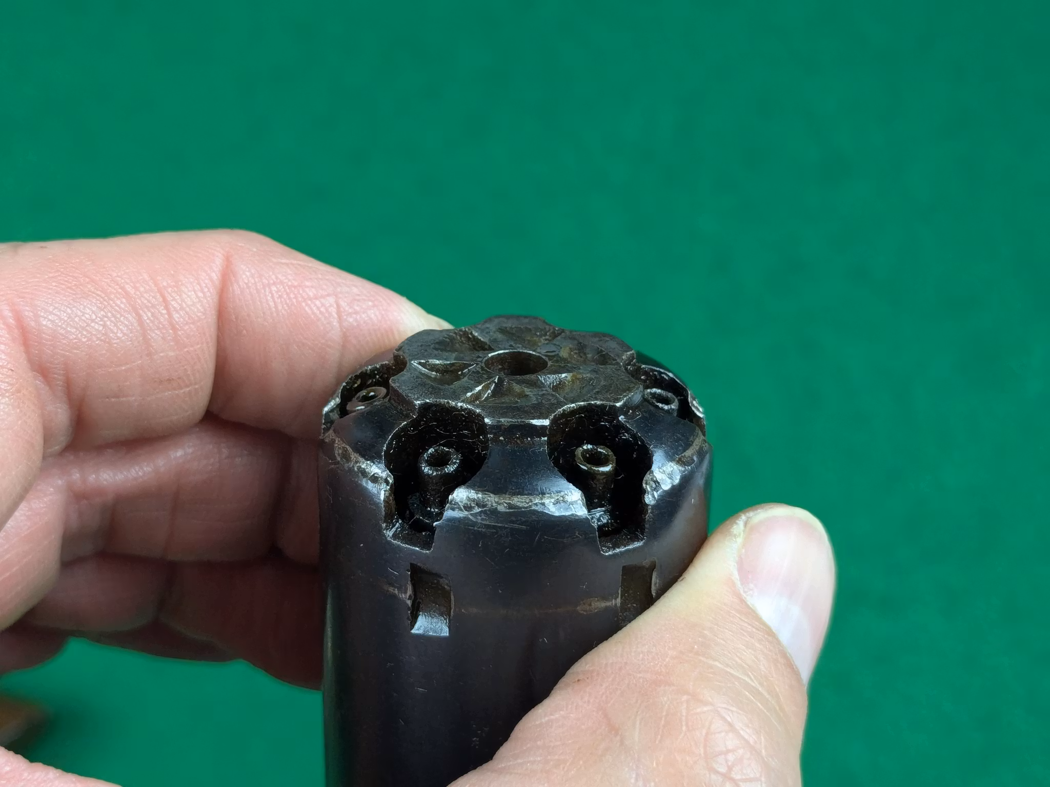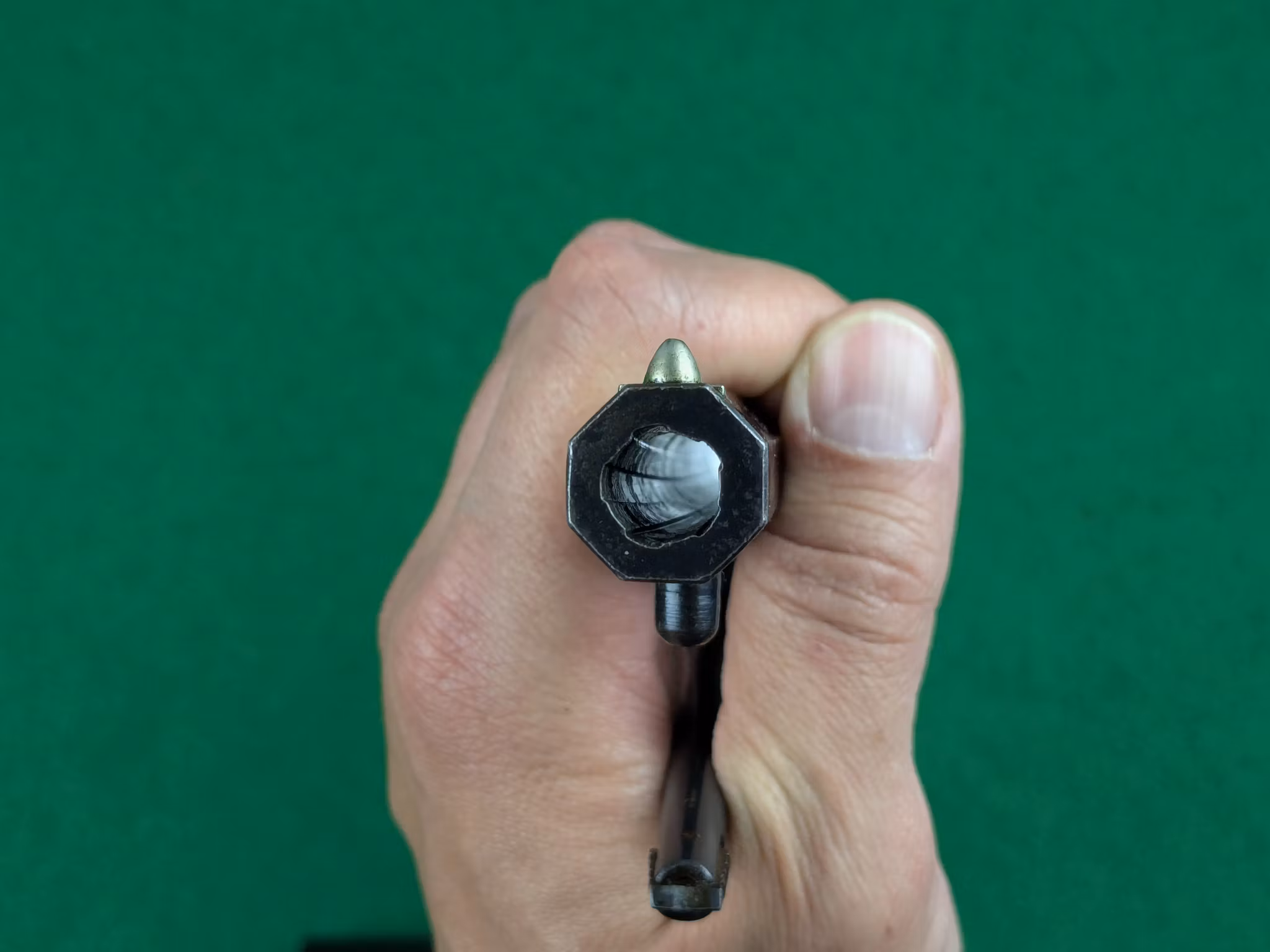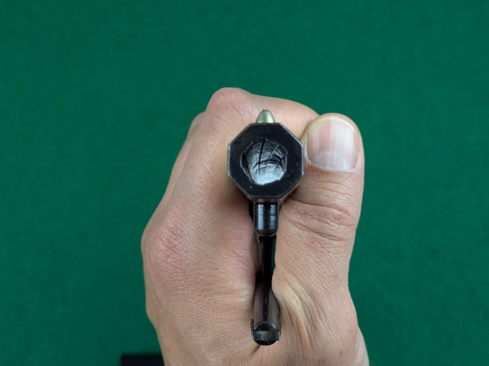 Pipa, stomme och trumma har fått omarbetad finish och ger ett trevligt helhetsintryck. Revolvern har överlag få slag och hanteringsmärken. Kolvsidorna har utsökt passform utan chip eller större märken.