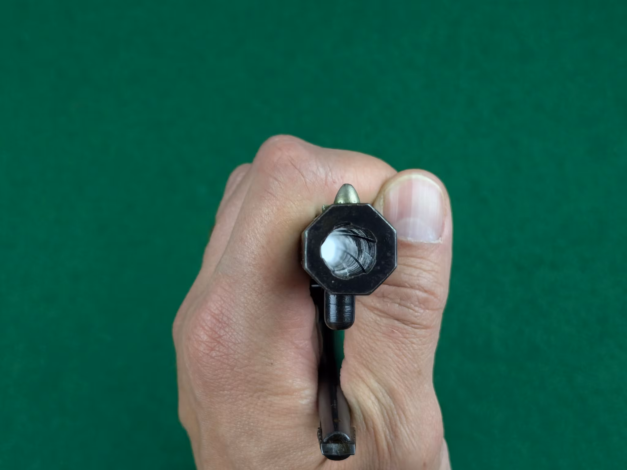 Piplängd 7.5" med en trumma för sex skott i kaliber .36". Single-action.