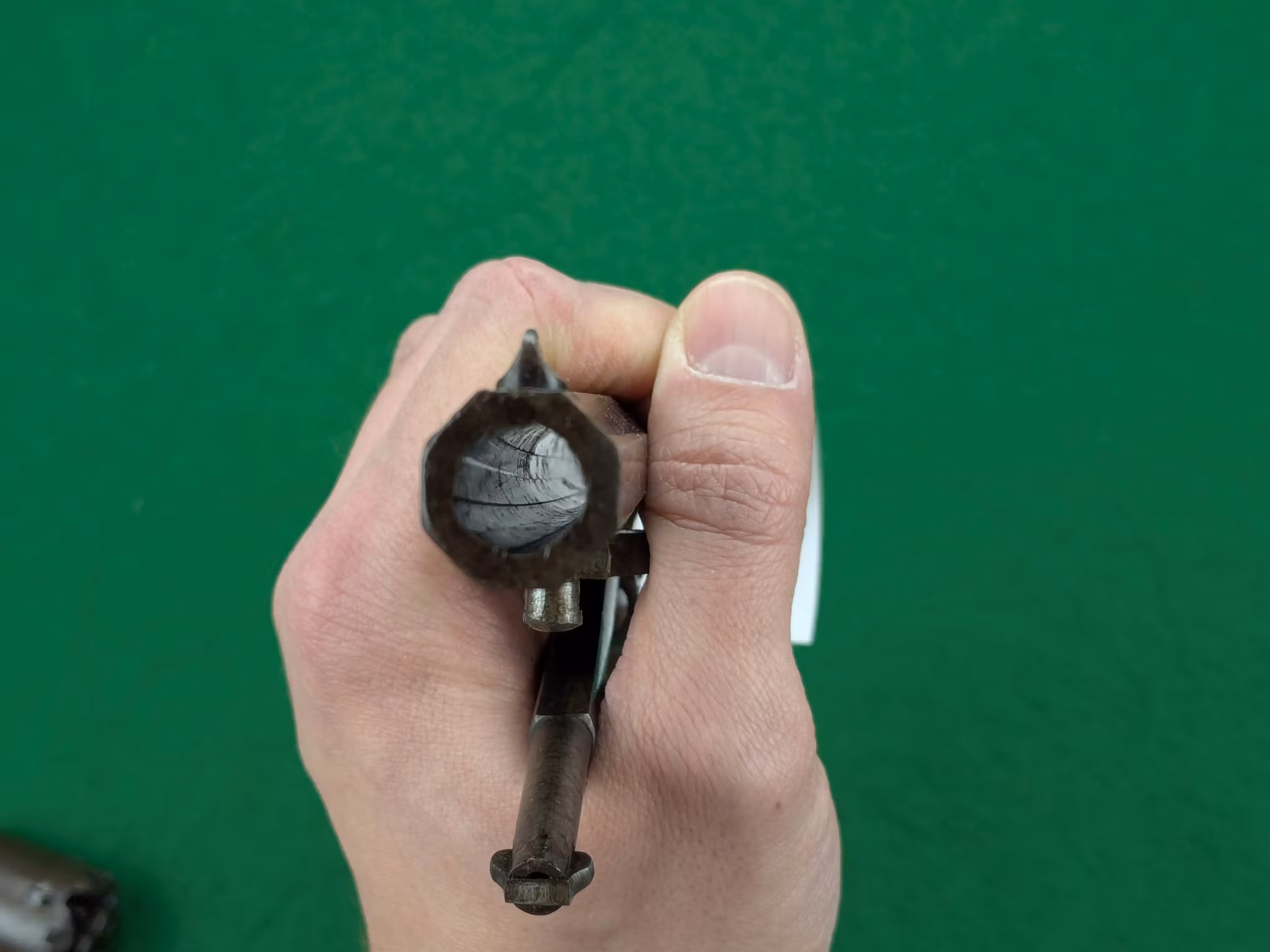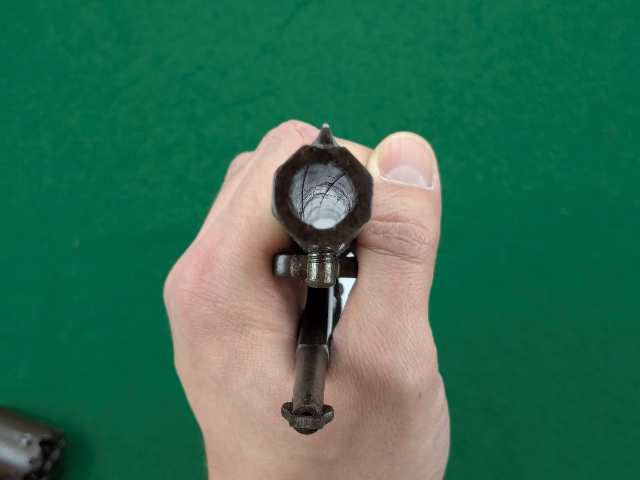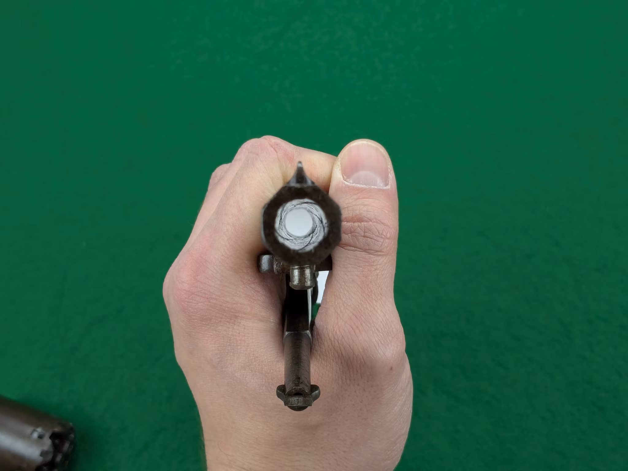Mekaniskt mycket väl fungerande med en krispig gång i matningen, känns faktiskt i princip som ny. Oerhört fin matning. Låser stumt i helspänn. Loppet mycket fint. Spel mellan trumma och pipa ligger på 0,15 mm orört original.