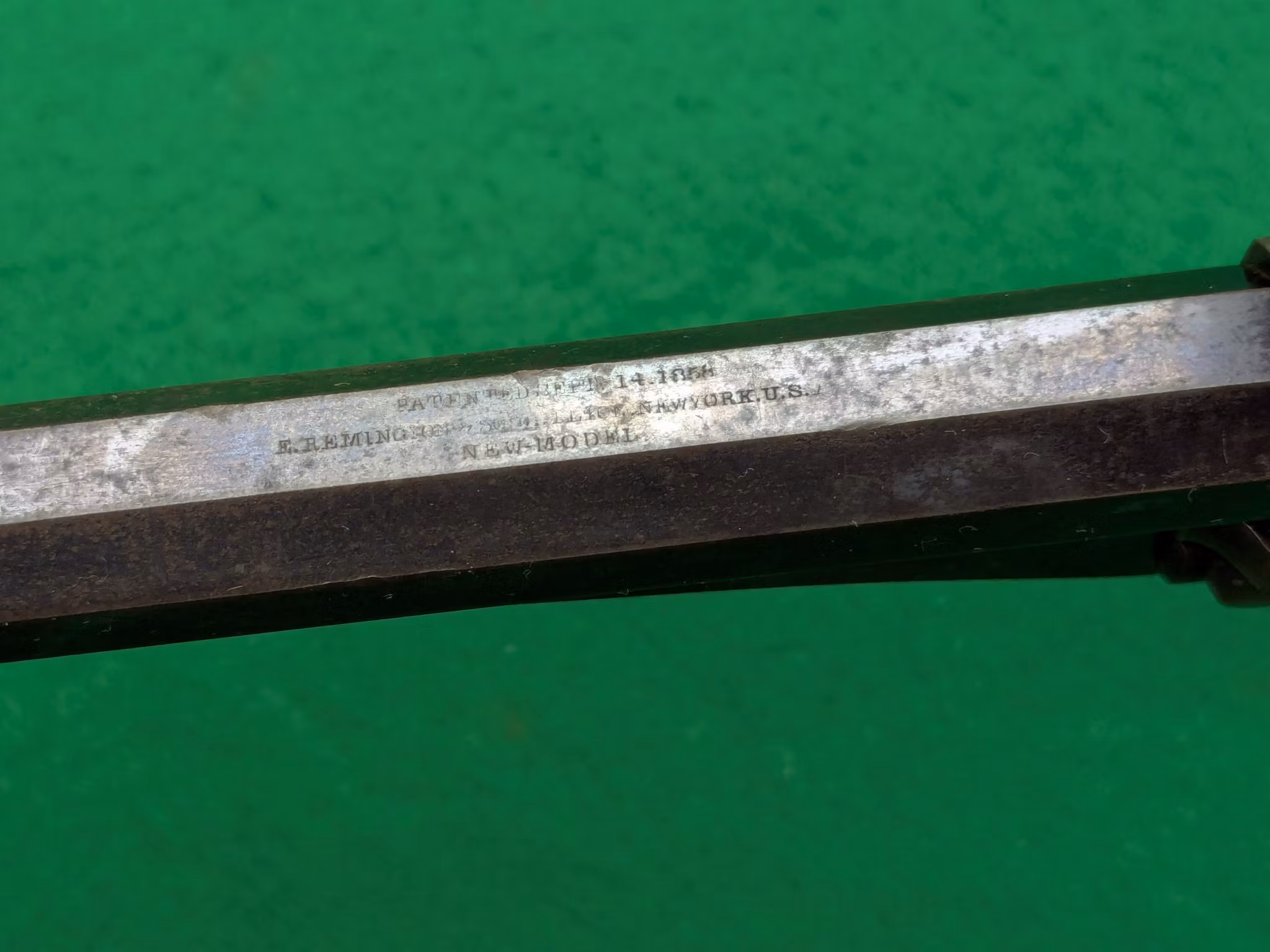 Militära kontrollbokstäver med krispiga stansningar syns över hela vapnet. Det här var en av de 106 000 exemplaren som gick direkt till nordstaterna under det amerikanska inbördeskriget.