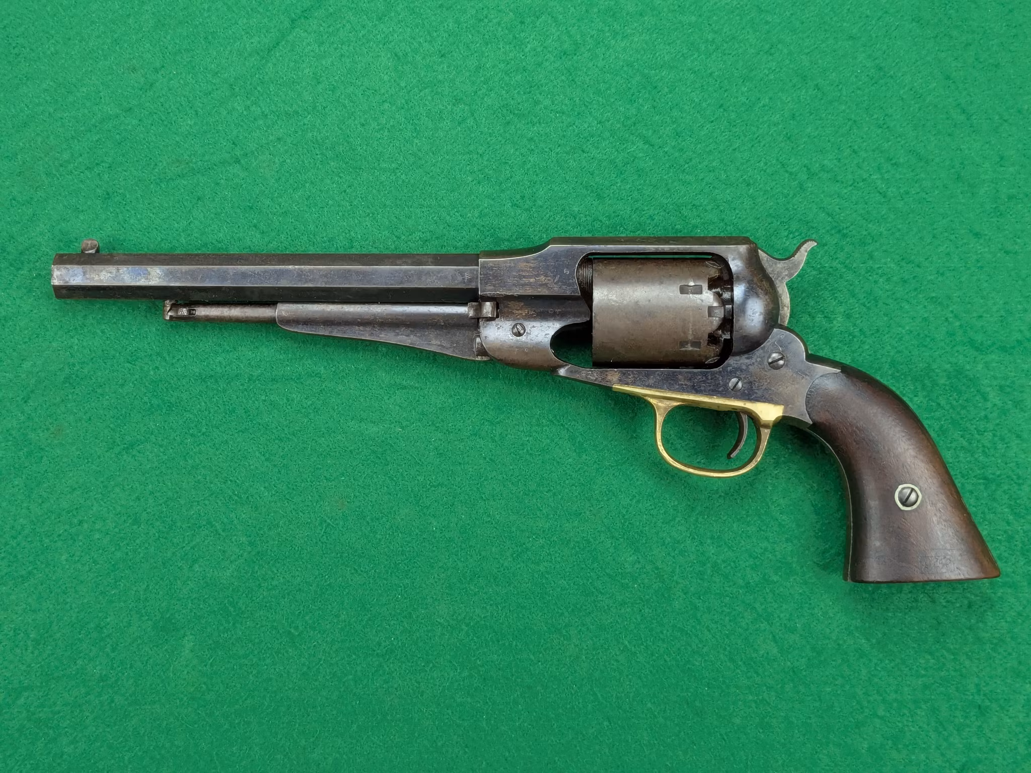 Remington New Model Army Revolver med serienummer 86570. Tillverkad i juli månad år 1864 av E. Remington & Sons i Ilion, New York State.