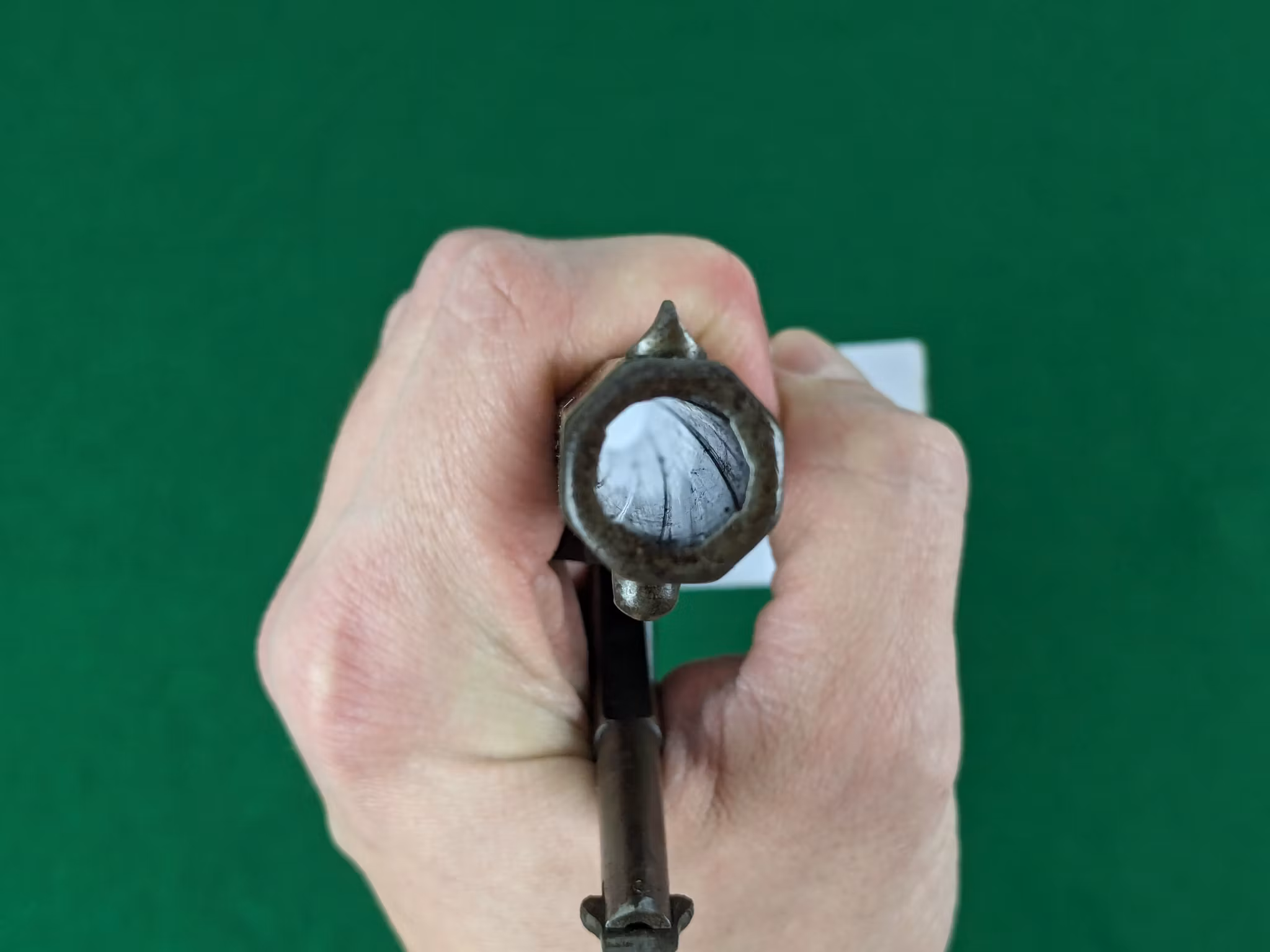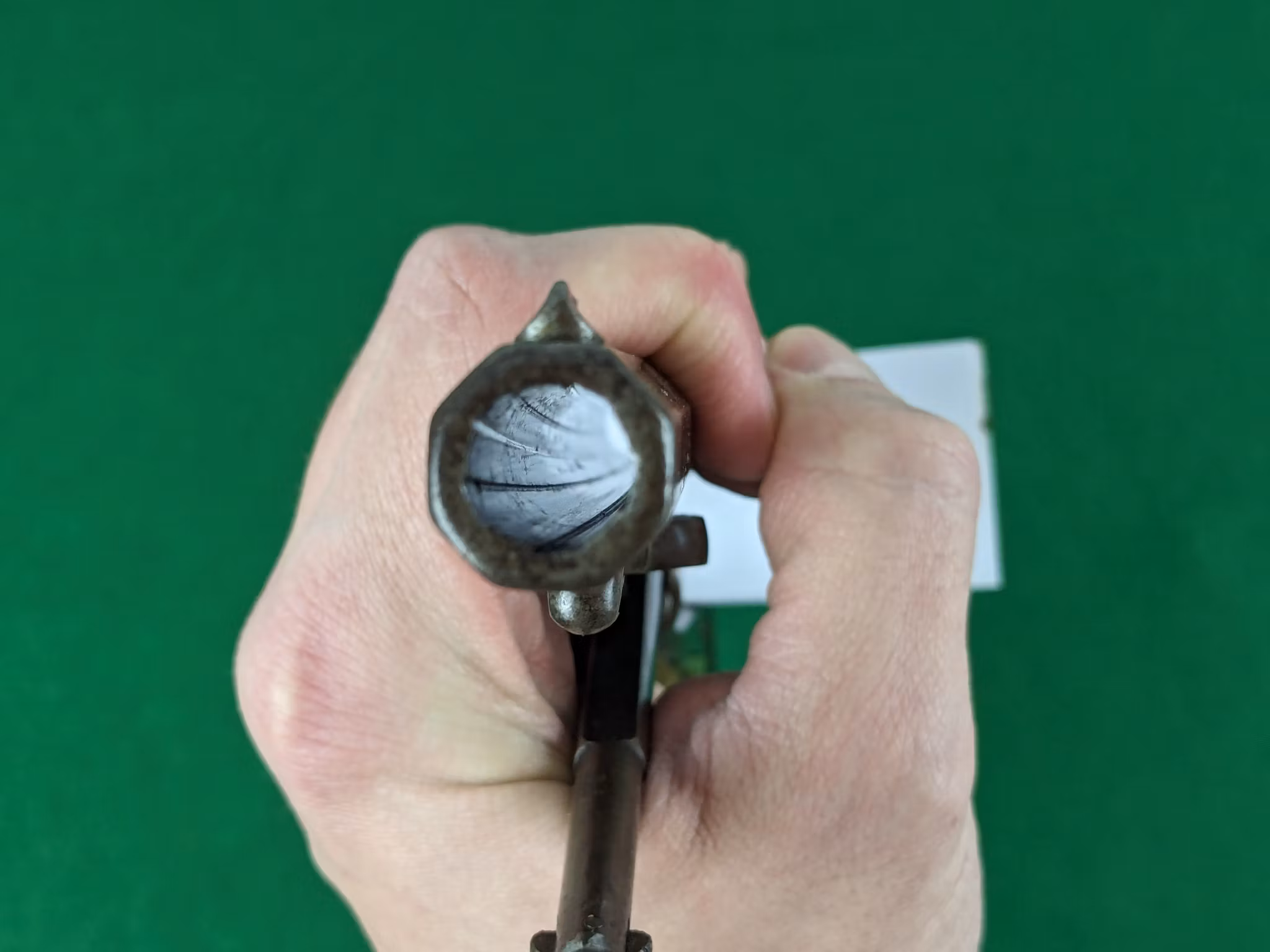 Mekaniskt fungerar revolven men halvspänn behöver åtgärdas om man har tänkt använda exemplaret som shooter. Den håller inte halvspänn. God fjäderspänst och tydlig, korrekt indexering i övrigt med ett säkert helspänn. Revolvern går alltså att använda men den är svårhanterad vid omladdning då trumman inte kan roteras utan att gå via helspänn, vilket inte är godkännt vid tävling. Om du inte kan åtgärda detta själv så kan vi rekommendera dig någon som hjälper till med denna tjänst. Spel mellan trumma och pipa ligger på 0,25 mm.
