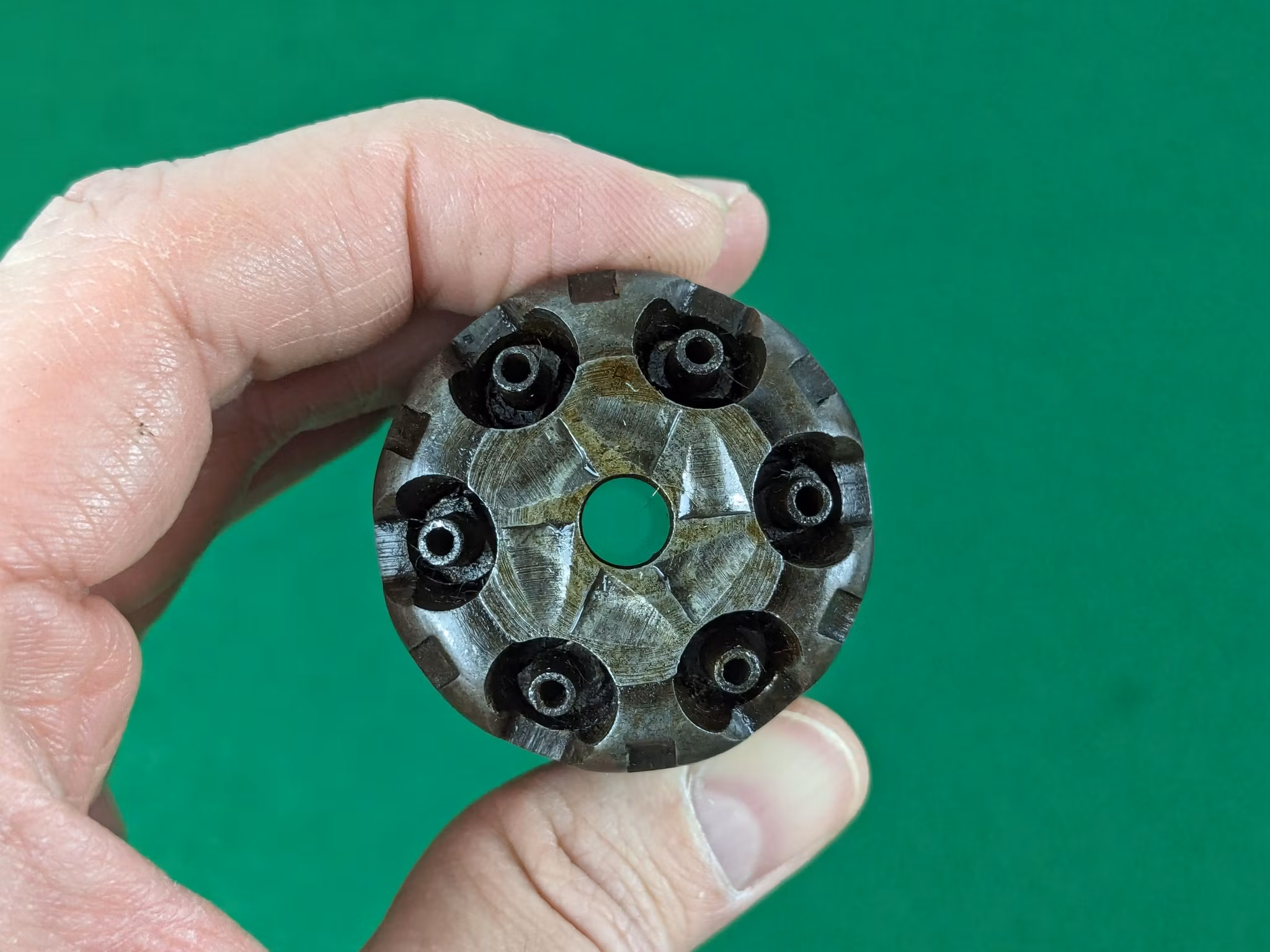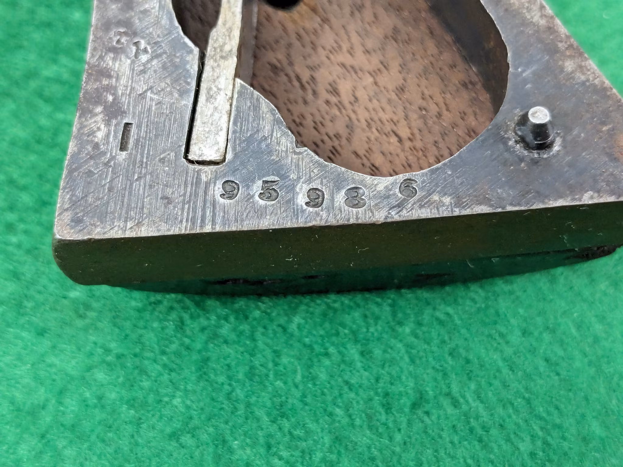 En hel del blånering kvarstår framförallt på pipa och stomme. Den är tunns och har jämnt och naturligt övergått i den vanliga mörkbruna blåneringsresten. Ett samlarvärdigt exemplar utan tvekan. Man ser också en orörd patina på varbygeln som endast fingrar och inga putsdukar gnuggat.