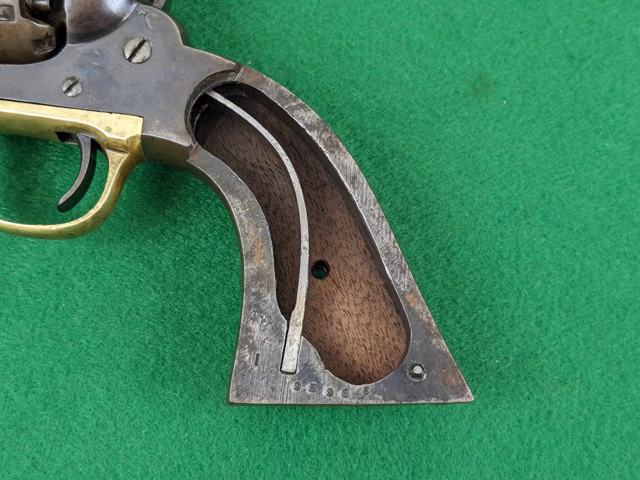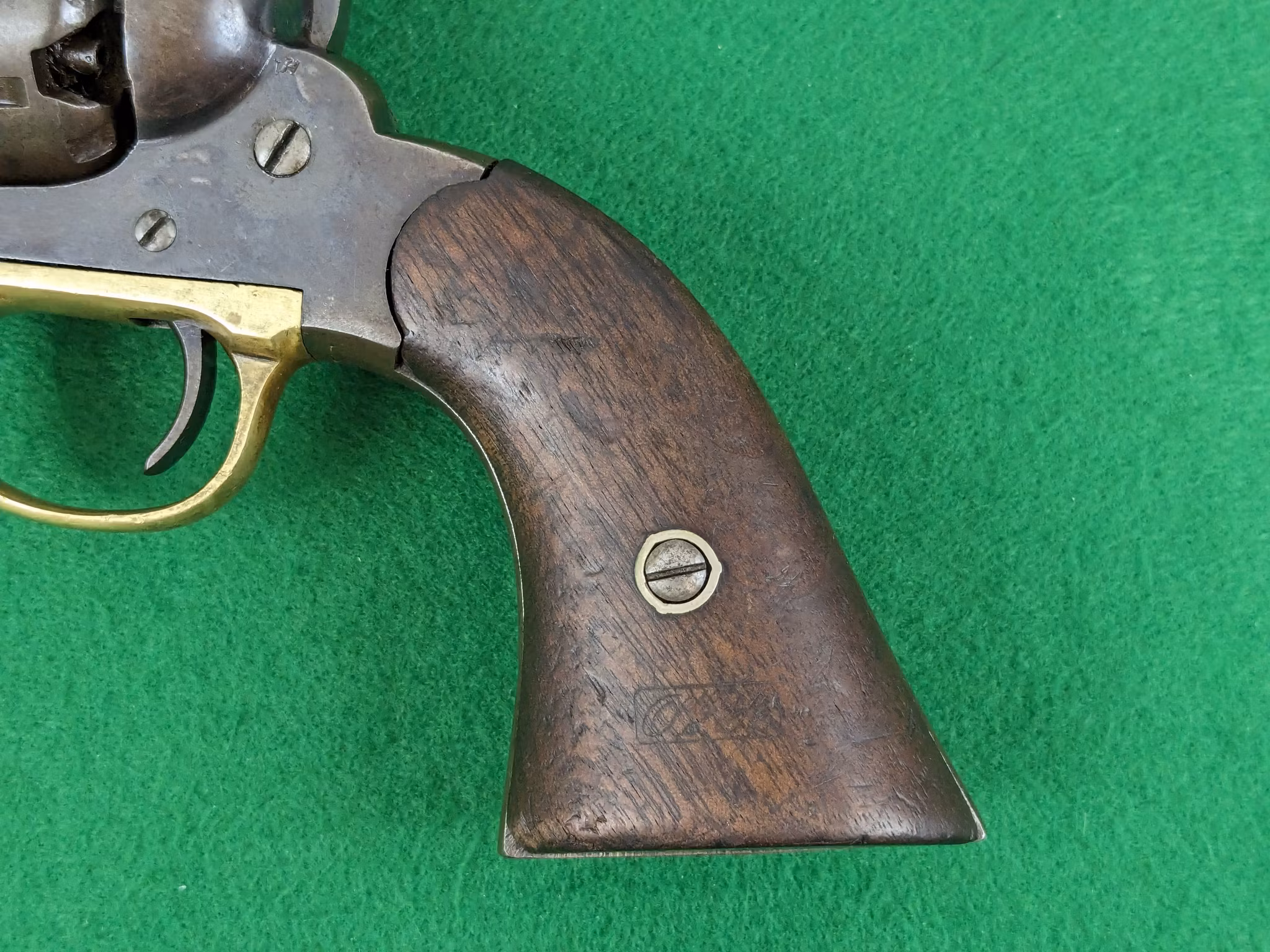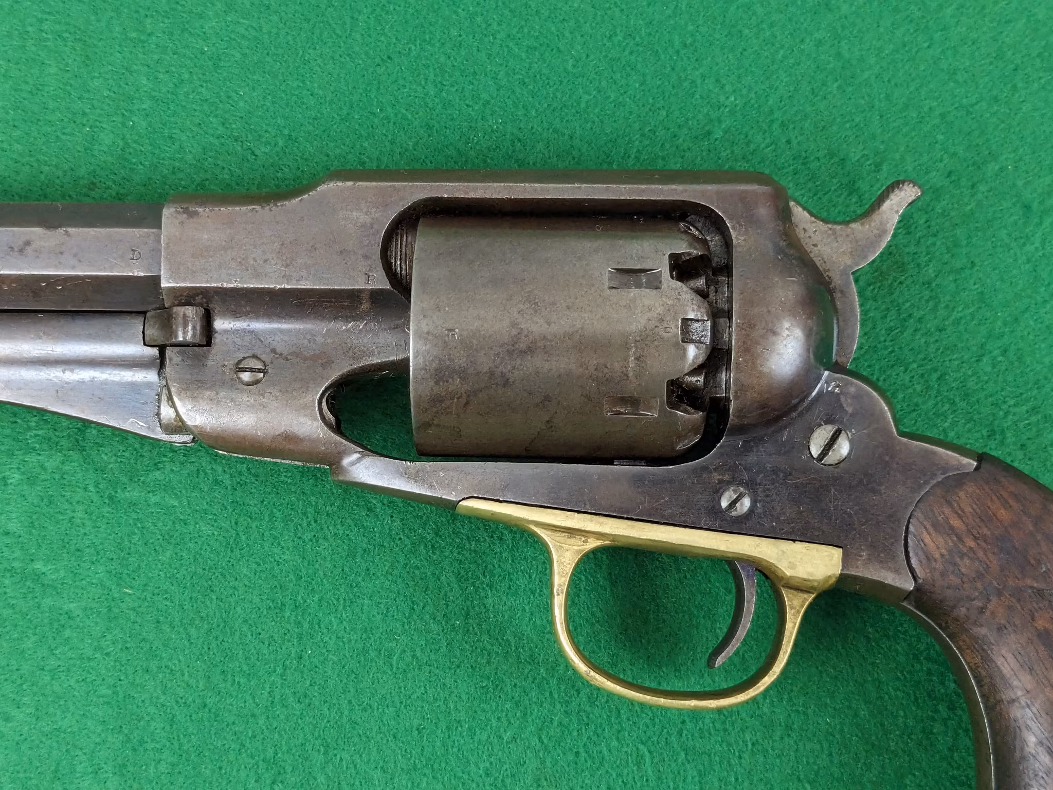 Märkt med välbevarad treradig pipadress. Tydliga militära kontrollbokstäver på de flesta större delar. Samma serienummer återfinns tydliga på pipa, varbygel och stomme. Trumman som är ovanligt fint skick har endast kontrollbokstäver, vilket är vanligt på dessa. Trumman är verkligen fint och saknar nästan helt slagmärken, med väldigt fina kamrar. Kolvsidorna är välbevarade och har en kartusch av O. W. Ainsworth. Dock ska sägas att de troligtvis kommer från ett annat motsvarande exemplar då passformen inte riktigt är där, även om den är så närliggande att man inte tänker på det. Jag kan ha fel i detta.