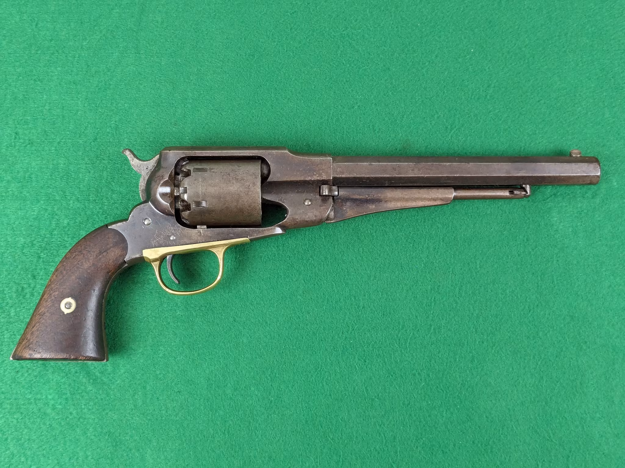 Remington New Model Army Revolver med serienummer 95986. Tillverkad i augusti månad år 1864 av E. Remington & Sons i Ilion, New York State.