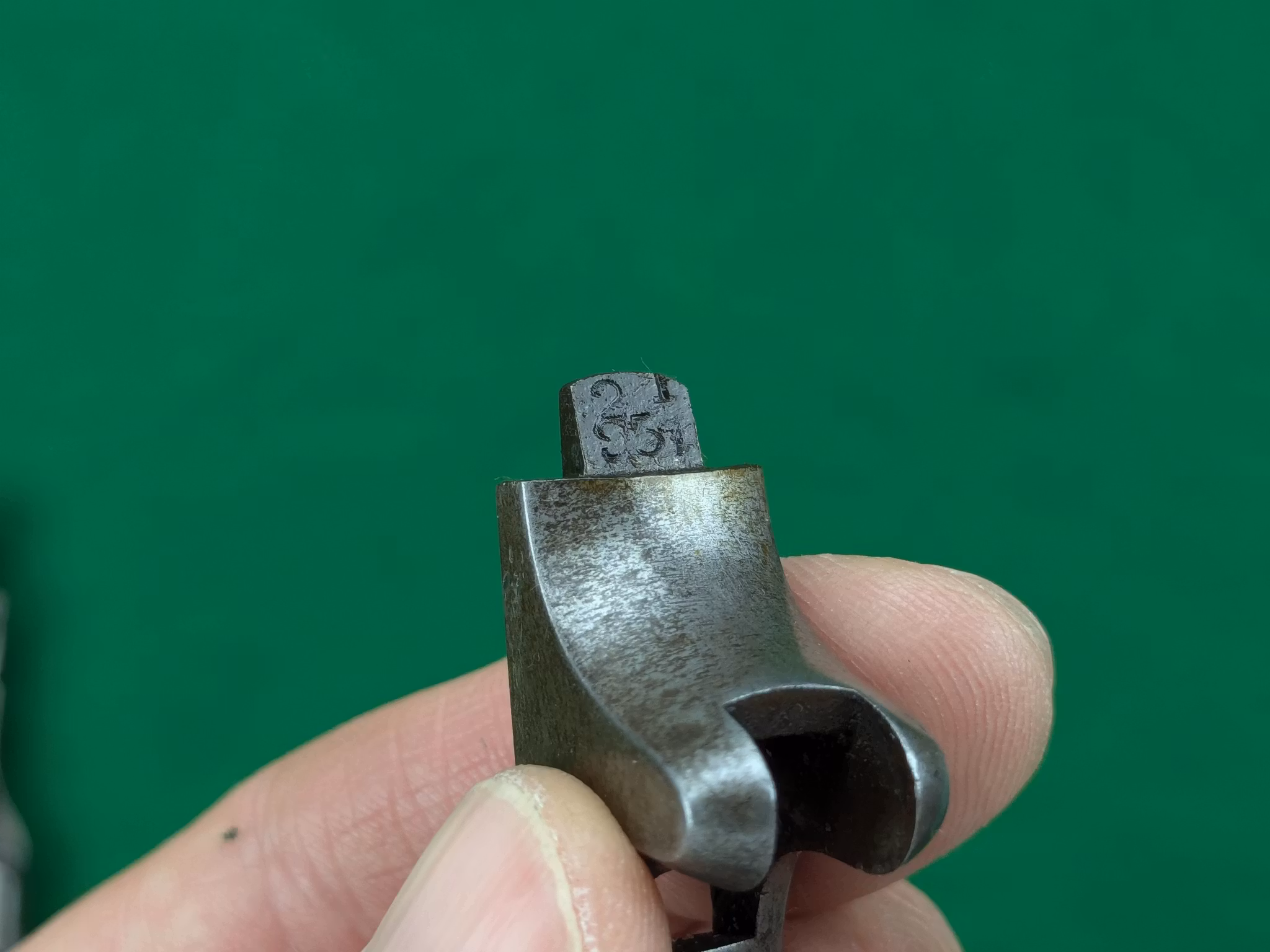 I övrigt endast märkt med serienummer på pipa, avtryckarskydd, stomme och trumma. Exemplaret är nummerriktigt.