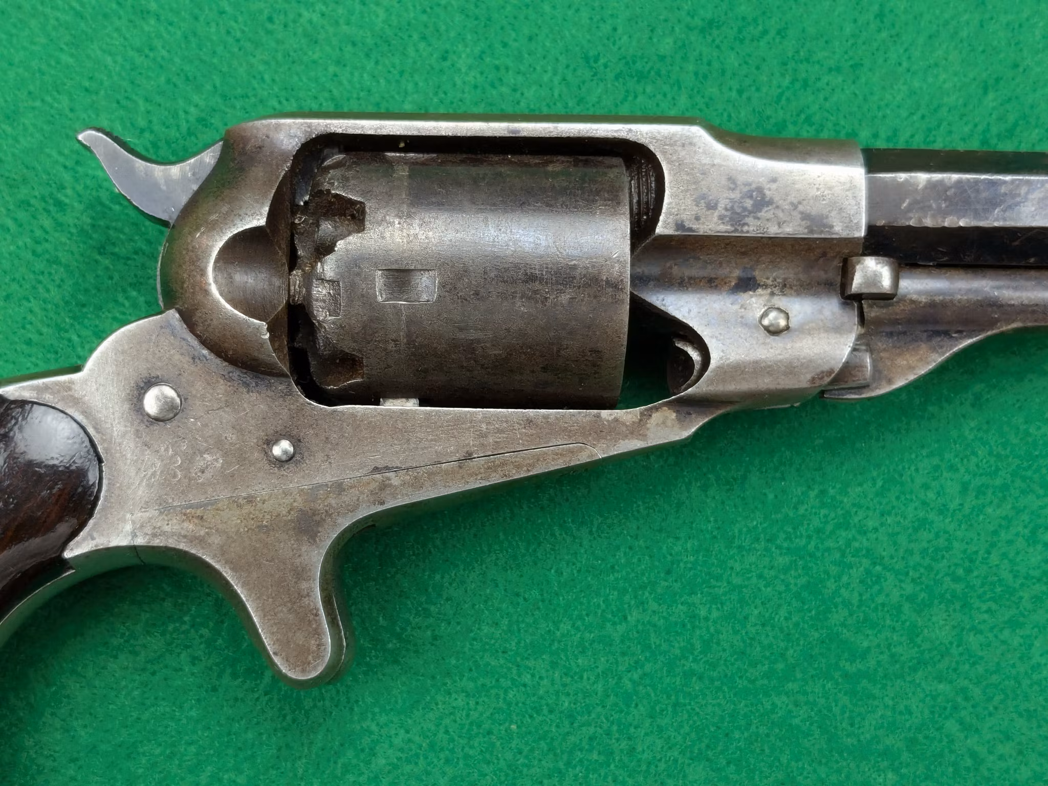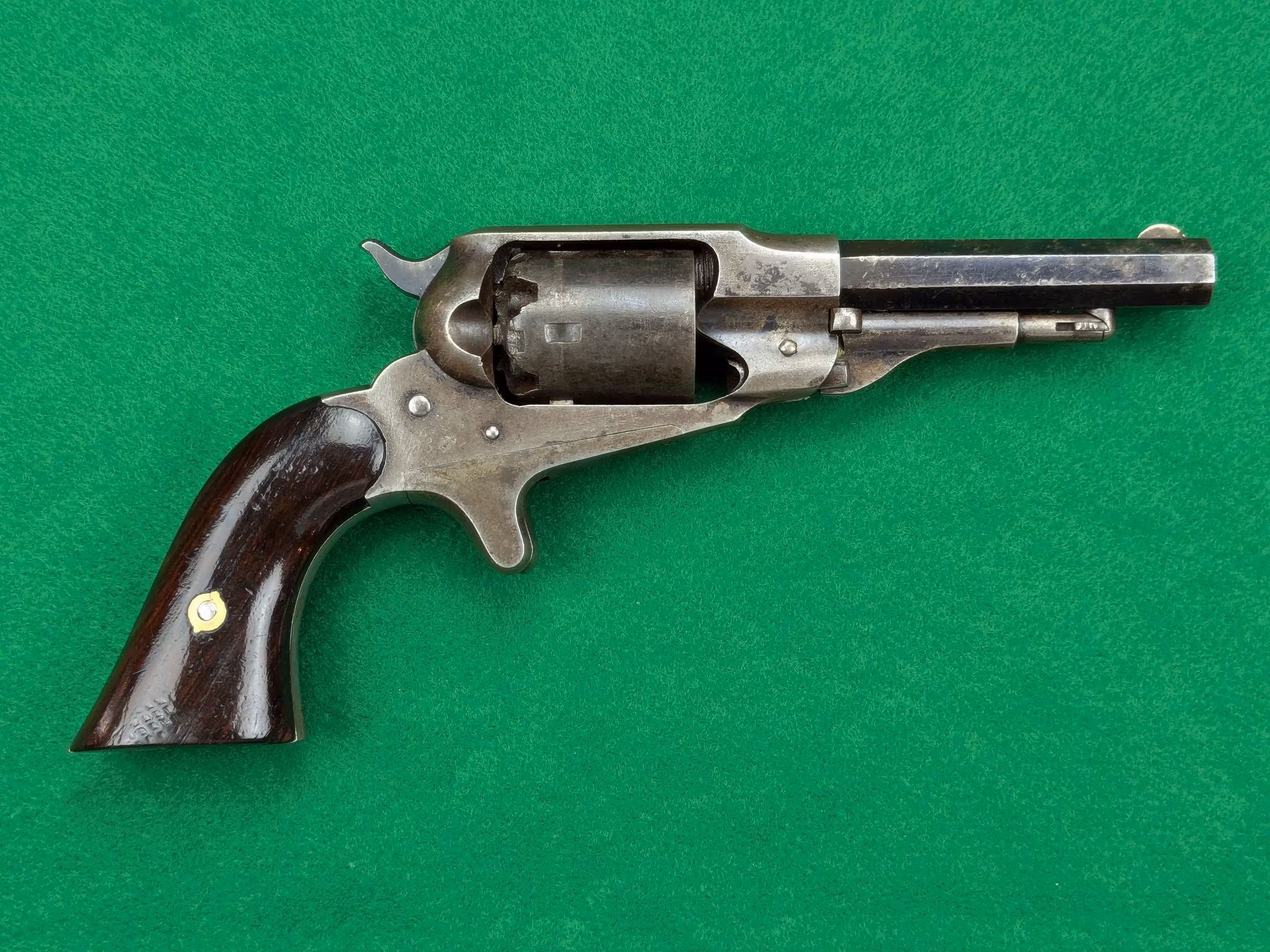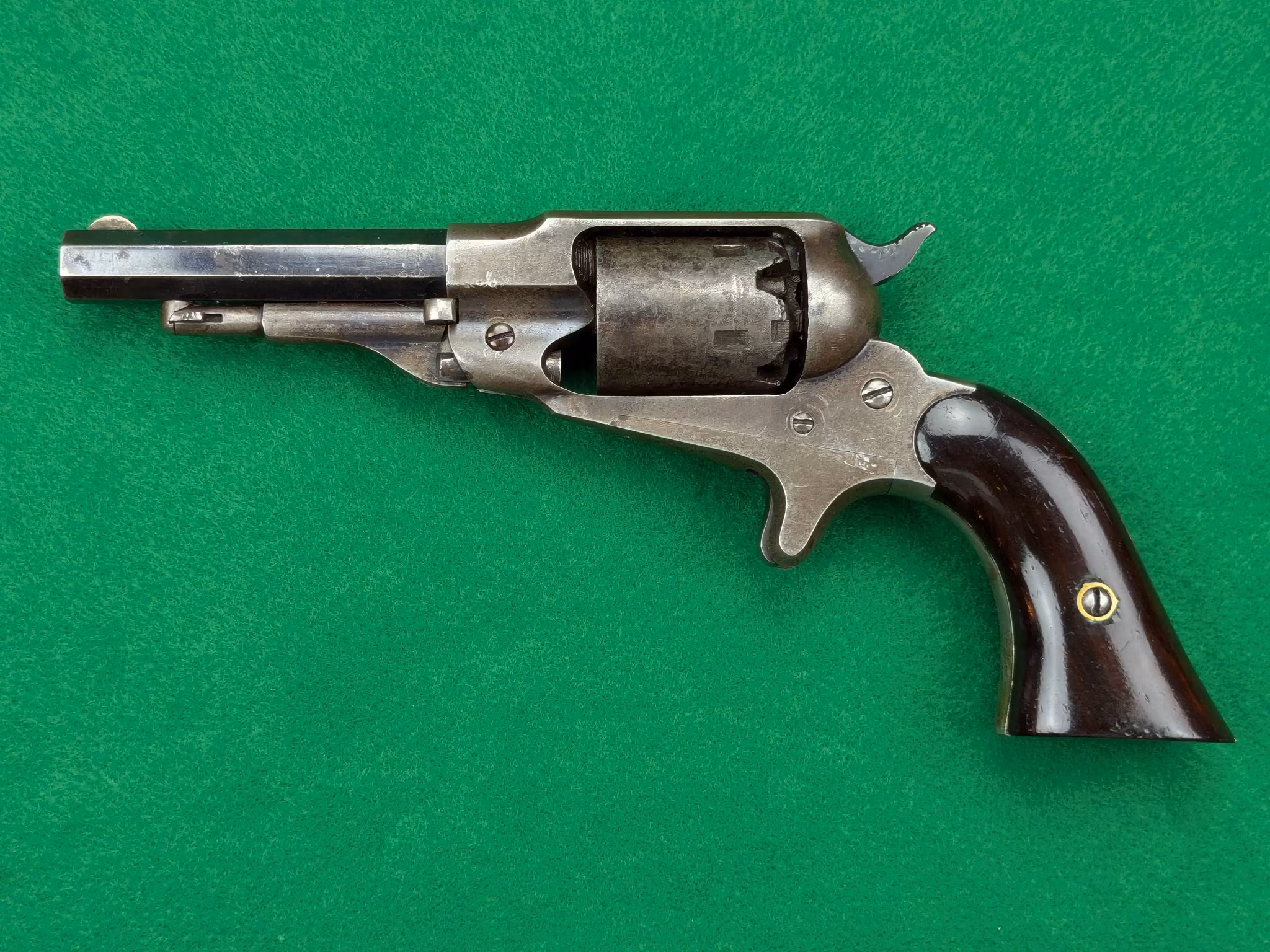 Remington New Model Pocket Revolver med serienummer 21951. Tillverkad under sent 1860 -tal eller tidigt 1870 -tal.