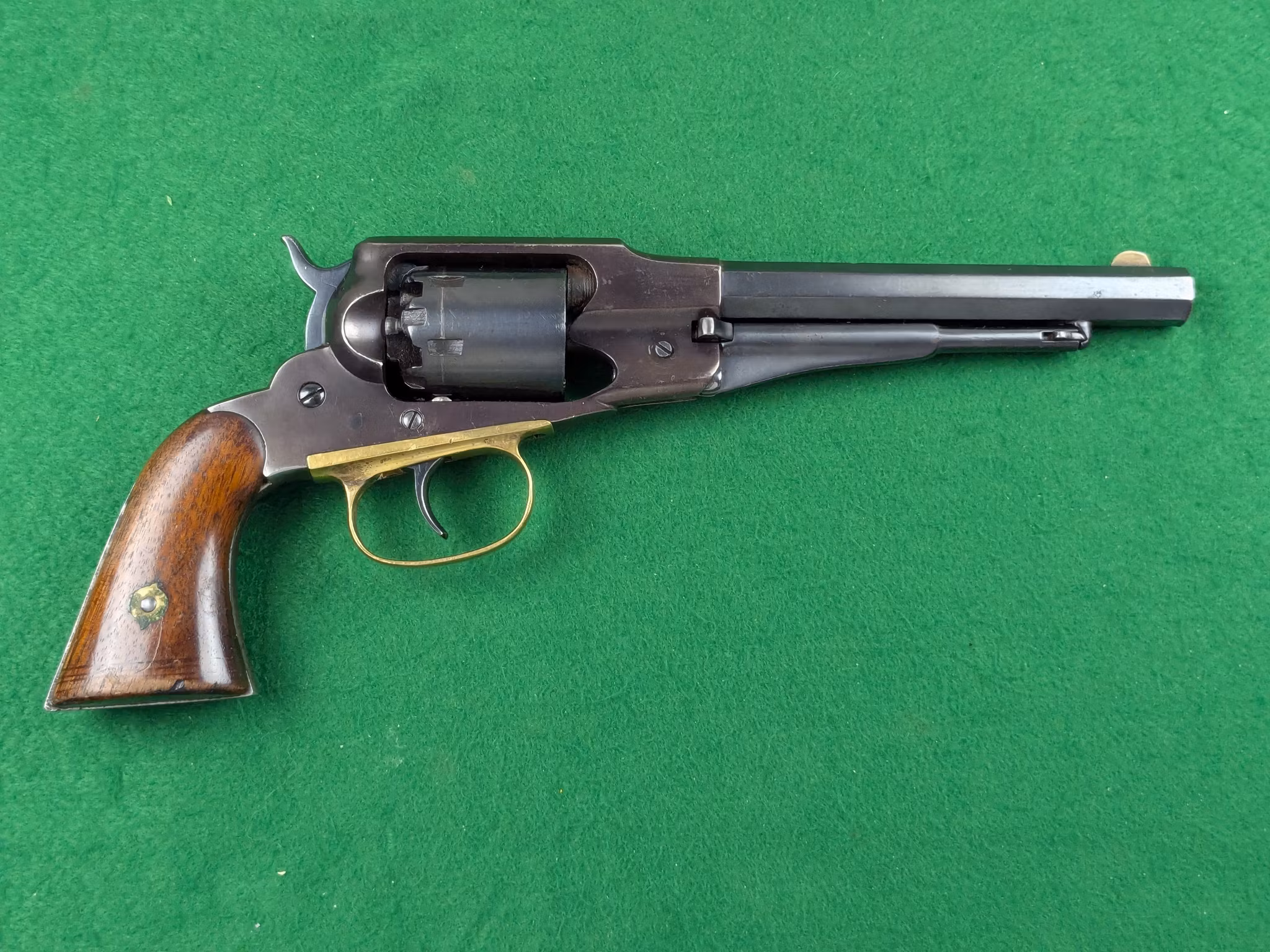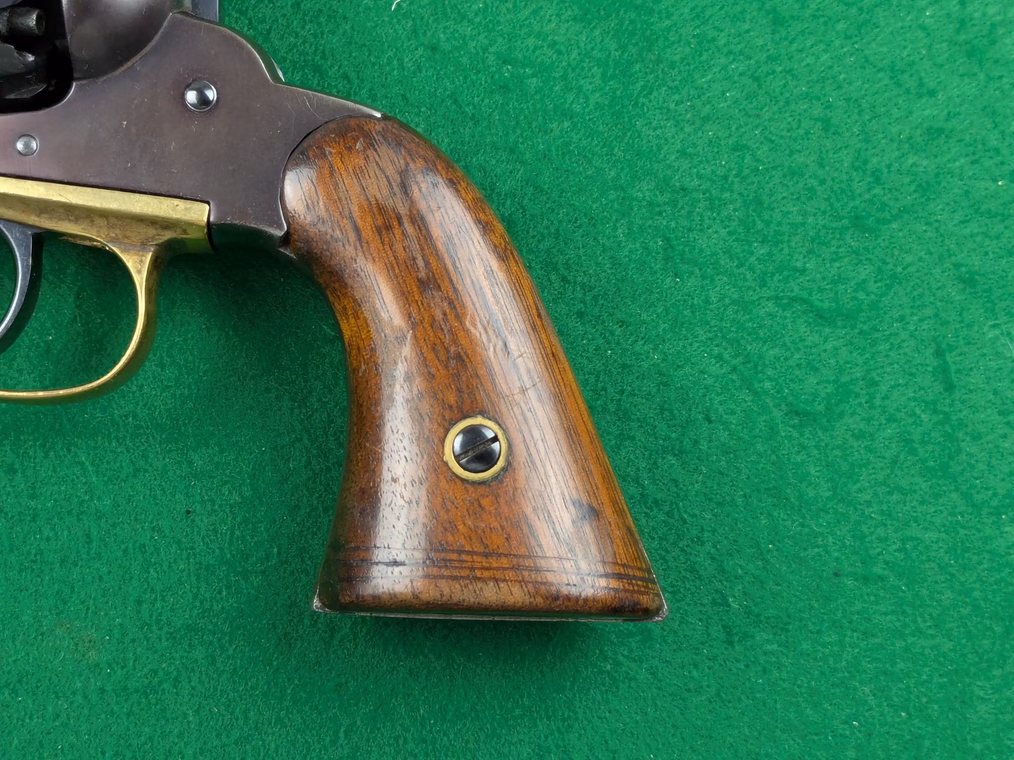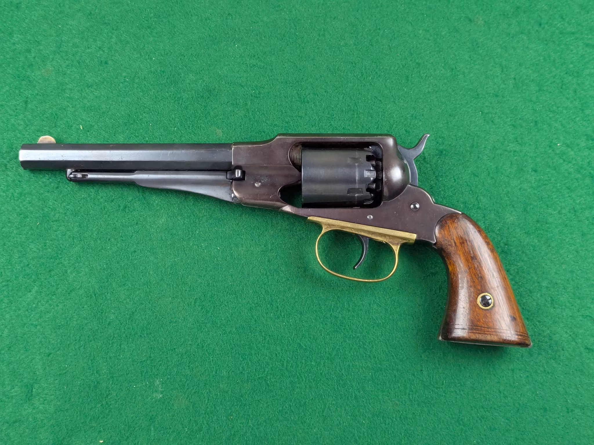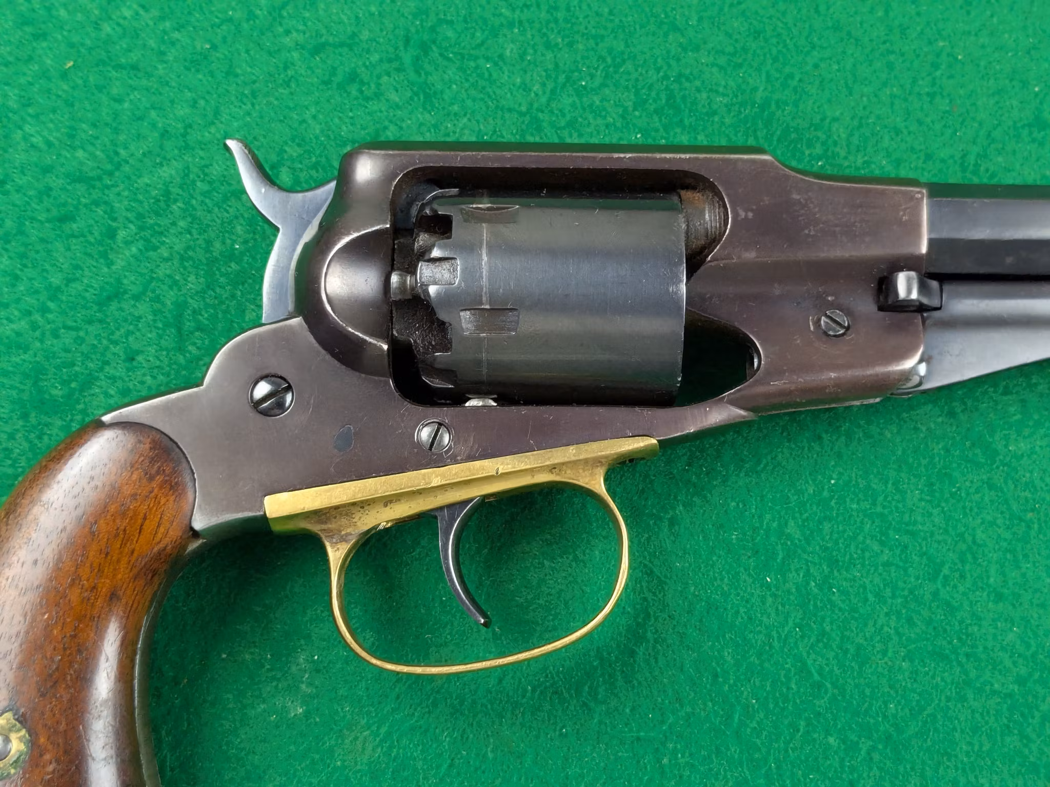 En revolver som passar samlaren av Remingtons produktion. Det tillverkades uppskattningsvis mellan 3-5 000 exemplar under åren 1863-73. En ovanlig modell som lätt identifieras på sin stora varbygel. Double-action mekanism ritad av Joseph Rider, konsulterande konstruktör hos Remington m fl.