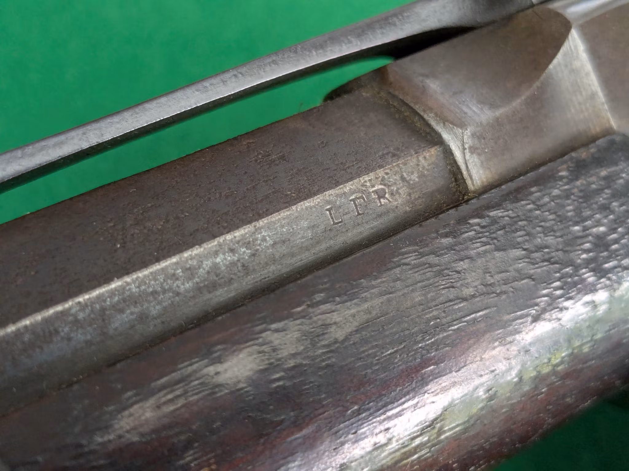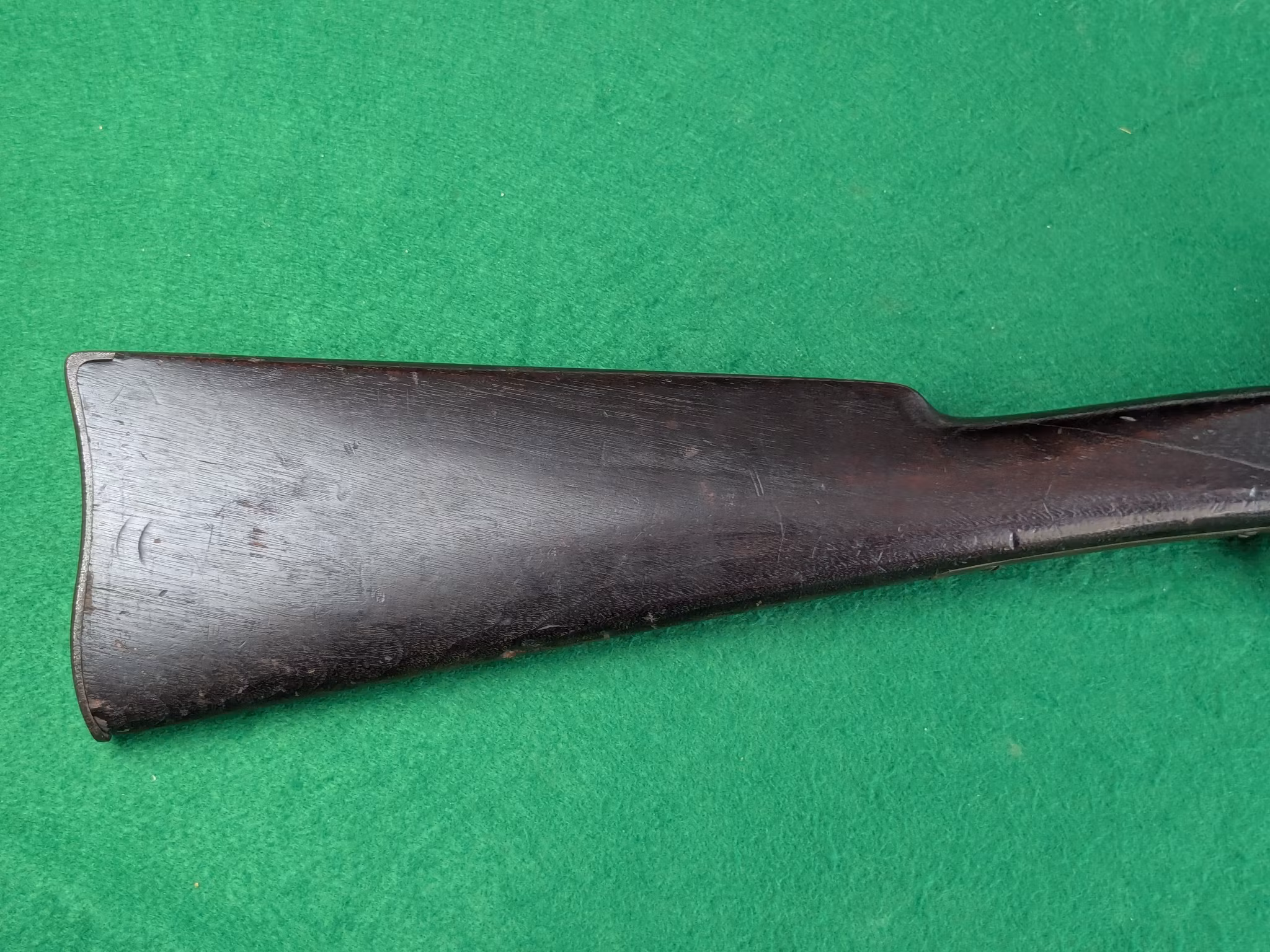 Militära märkningar och kartusch på kolvhalsen av Joseph Hannis. Såld direkt från fabrik till Nordstaterna under inbördeskriget.